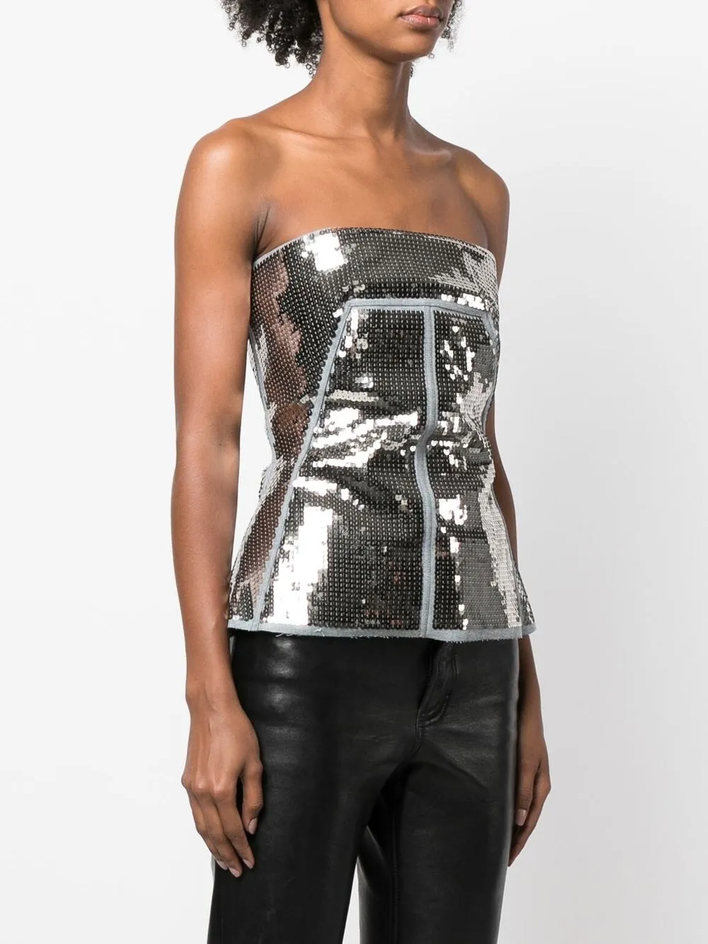Топ-бюстье с пайетками Rick Owens, серебяный
