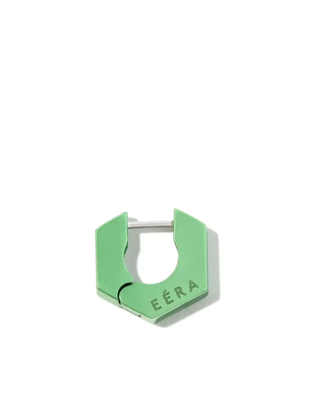 Светло-зеленый, 18-каратное белое золото, нержавеющая сталь с PVD-покрытием, маленькие серьги-кольца, выгравированный логотип и для проколотых ушей. В комплект входит одна серьга.