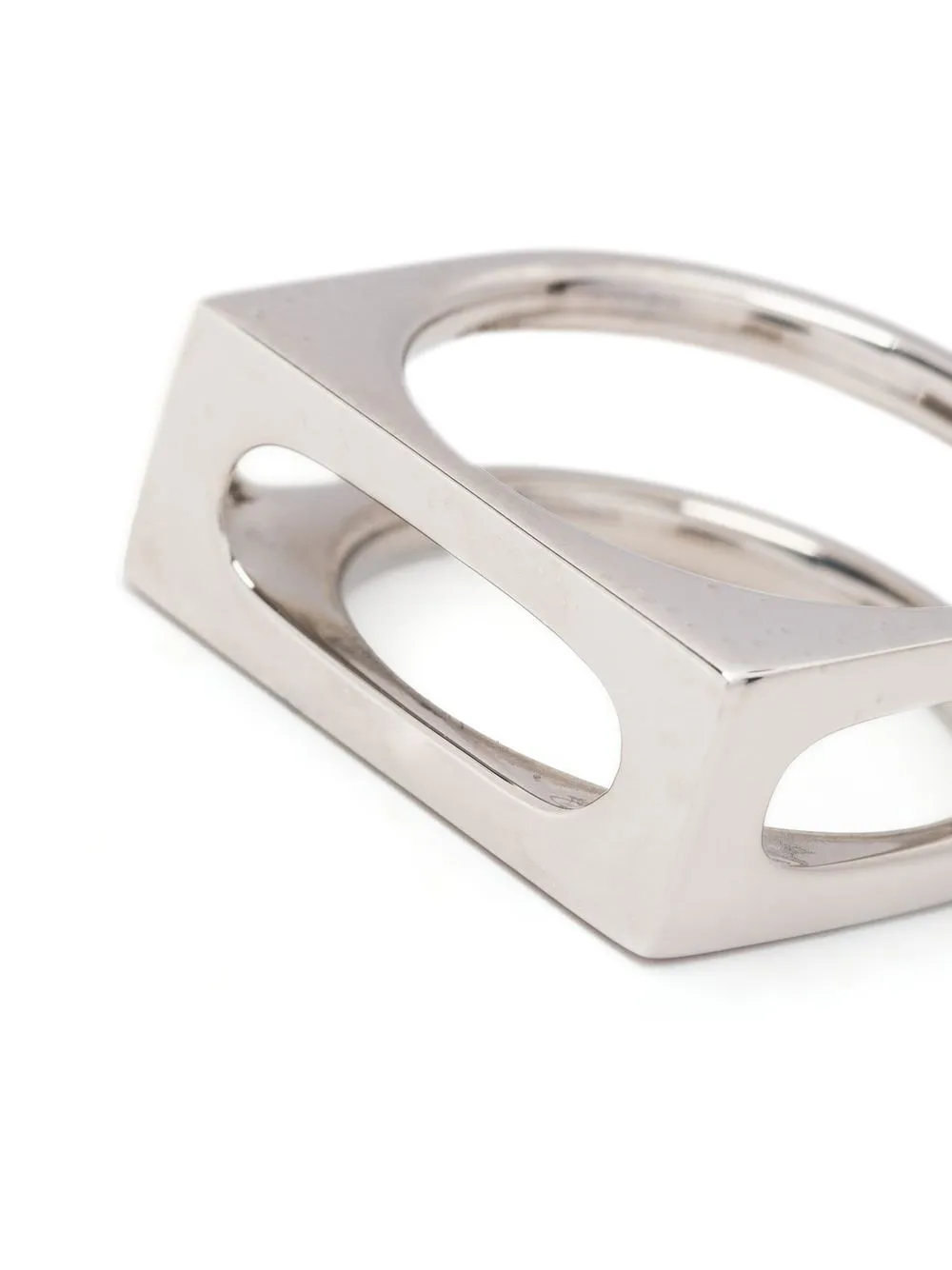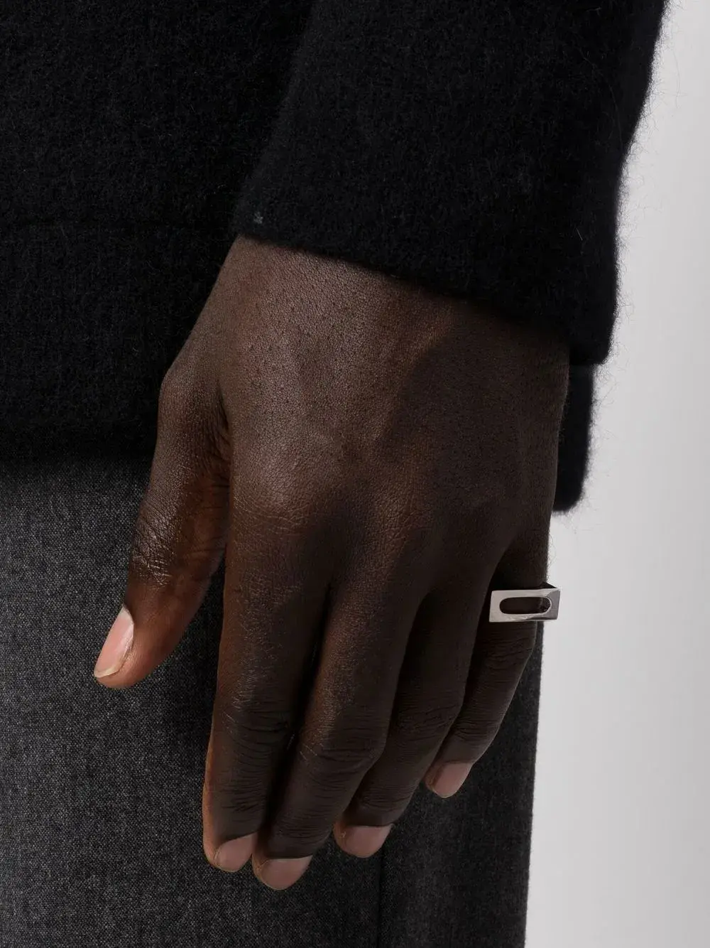 Серебристый, серебро 925 пробы, вырезные детали, плоская кисть и массивное кольцо.