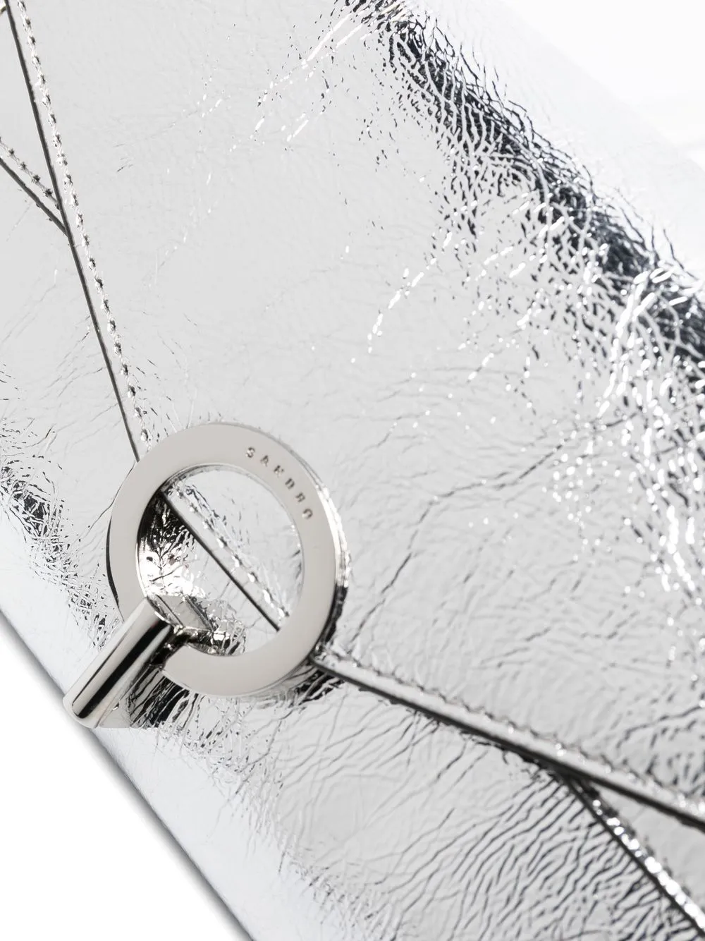 Подробнее о товаре: Серебристый, телячья кожа, покрытие с эффектом металлик, серебристая застежка на зажиме, откидной клапан, съемный цепочный ремень на плечо, прорезной карман сзади и основное отделение. Ответственный выбор: Кожа в составе этого товара сделана на фабрике, сертифицированной организациями Leather Working Group (LWG) или ICEC. Это гарантирует, что производитель минимизировал негативное влияние материала на окружающую среду. Узнать больше о том, какие товары получают отметку «Ответственный выбор», можно из материала «Как мы оцениваем экологичность и этичность».