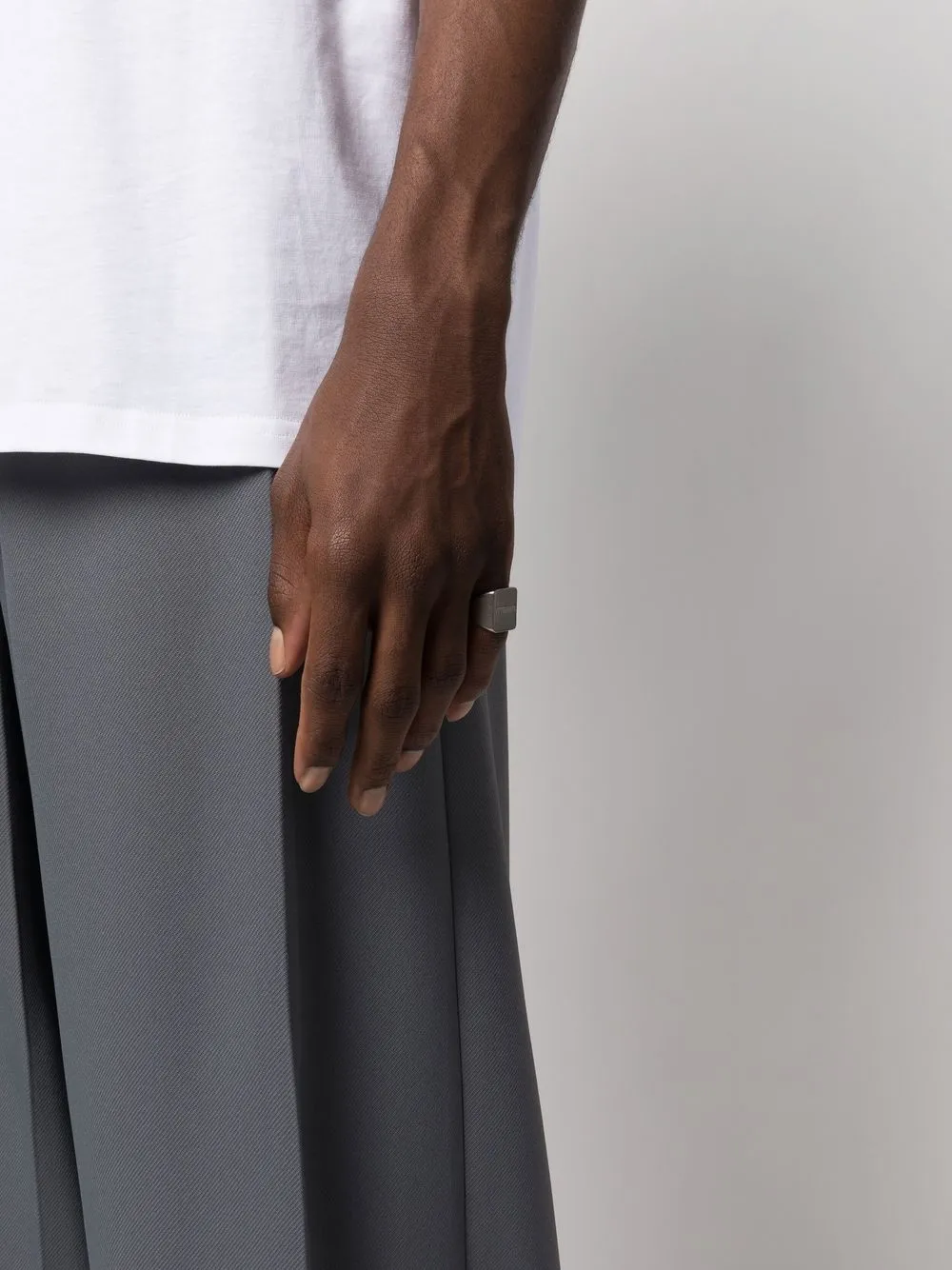 Серебристый, латунь, выгравированный логотип, квадратная форма и кольцо-печатка.