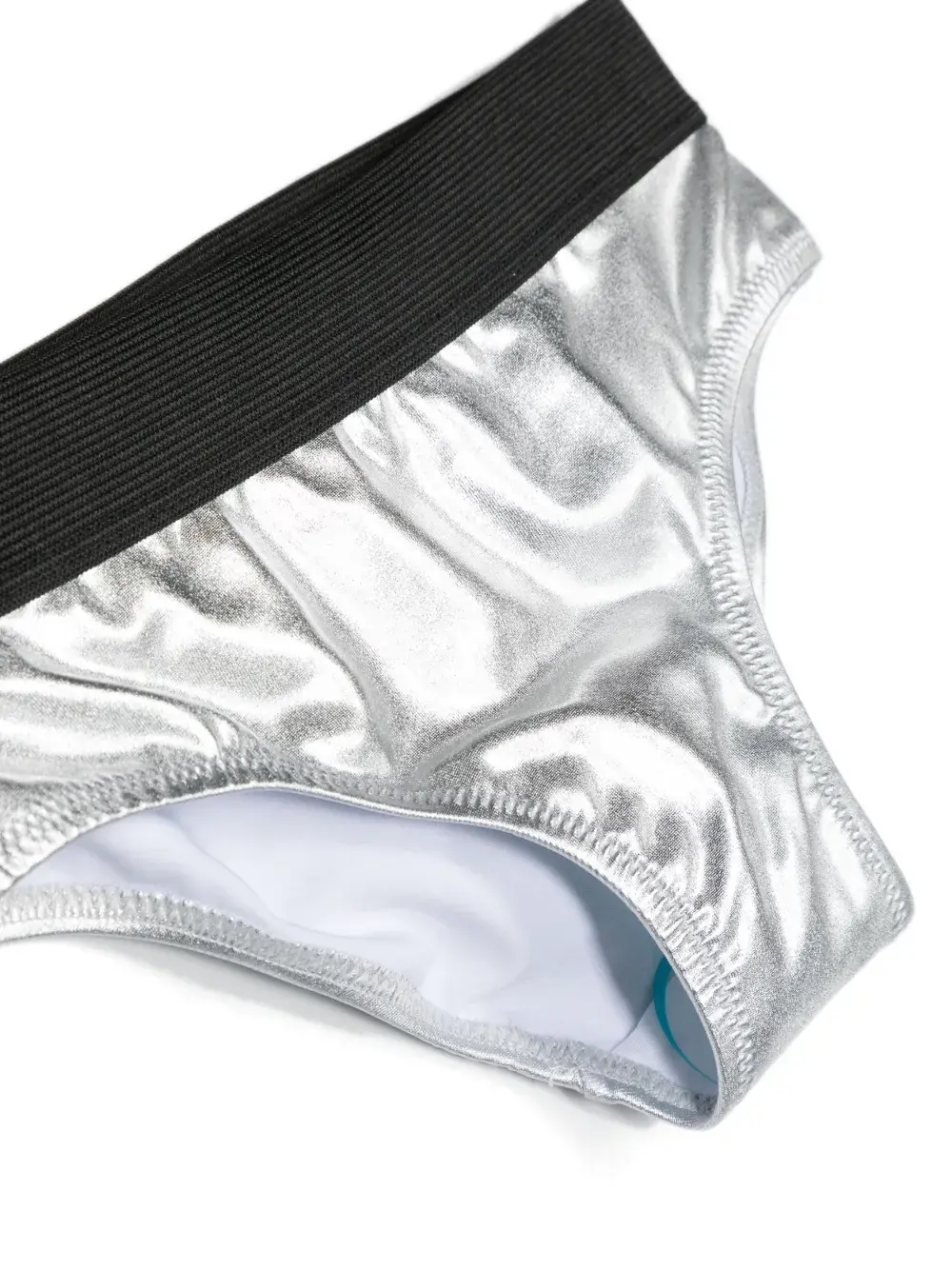 Подробнее о товаре: Серебристый, черный, эластичный материал, покрытие с эффектом металлик, модель из двух частей, завязки вокруг шеи, вставка из эластичной ленты и цельная подкладка. Пожалуйста, примеряйте купальники и пляжные шорты только поверх собственного белья. Узнать больше о том, какие товары получают отметку «Ответственный выбор», можно из материала «Как мы оцениваем экологичность и этичность».