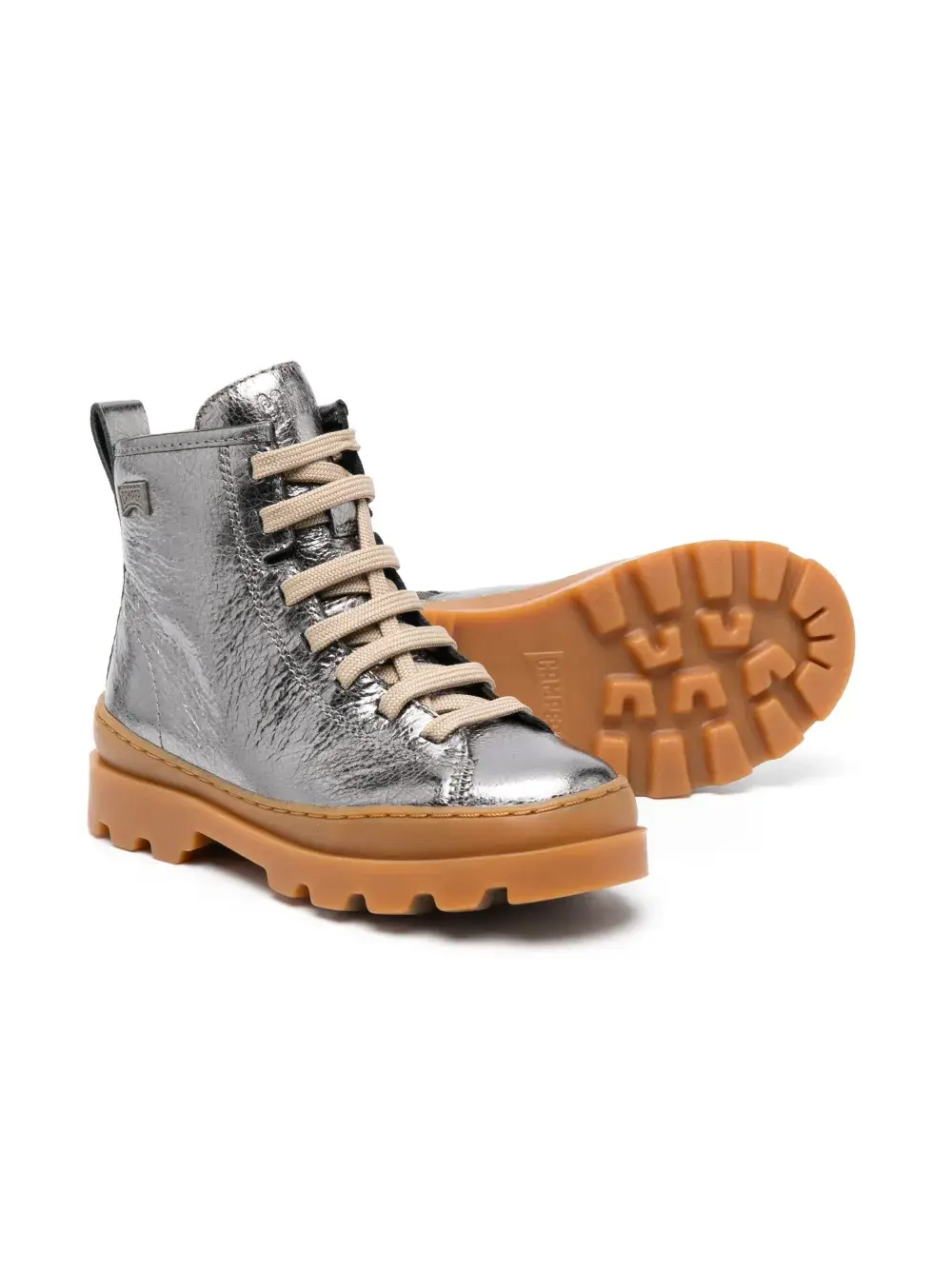 Подробнее о товаре: Серебристый, переработанный полиэстер, телячья кожа, эффект металлик, закругленный носок, шнуровка спереди, высота по щиколотку и рифленая резиновая подошва. Кожа в составе этого товара сделана на фабрике, сертифицированной организациями Leather Working Group (LWG) или ICEC. Это гарантирует, что производитель минимизировал негативное влияние материала на окружающую среду. Узнать больше о том, какие товары получают отметку «Ответственный выбор», можно из материала «Как мы оцениваем экологичность и этичность».