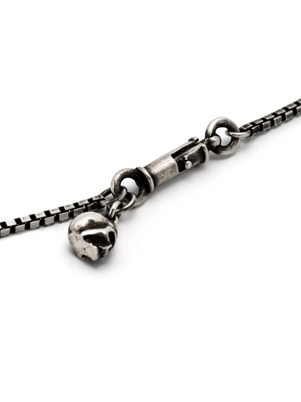 Серебристый, серебро 925 пробы, подвеска в виде черепа, цепочка на шею и застежка с поворачивающимся замком.