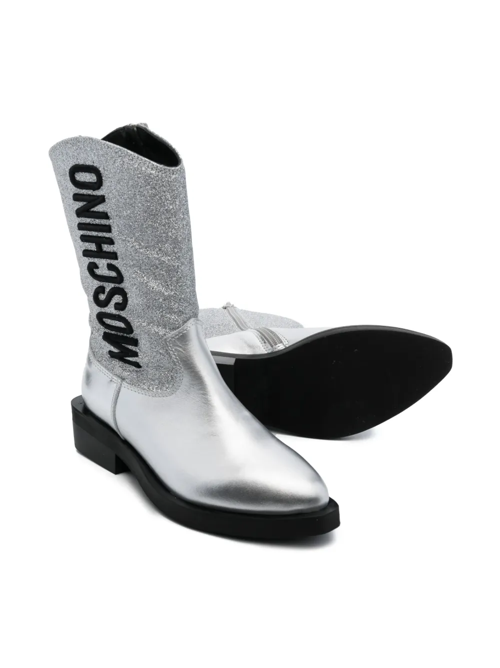 Сапоги с вышитым логотипом Moschino Kids, серебяный