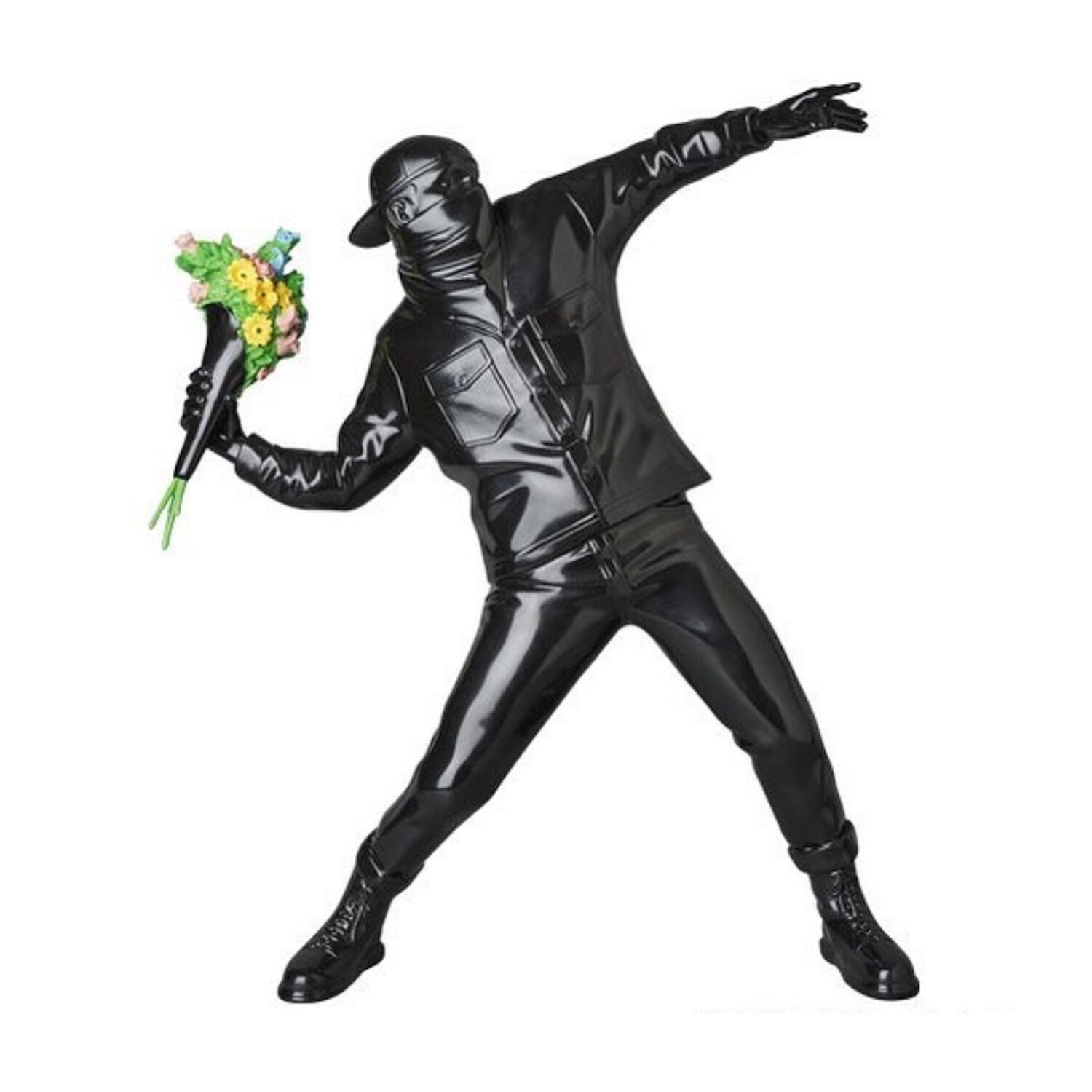 Оригинальная фигурка Flower Bomber черного цвета от Banksy x Brandalism. Революционер, художник, аноним, эксперт в акционизме — вы наверняка знаете Бэнкси. Одной из главных работ Бэнкси остается и по сей день «Flower Bomber», изображающая молодого бунтовщика, который вместо того, чтобы бросать камень, собирается бросить красивый букет цветов… Классика Бэнкси.