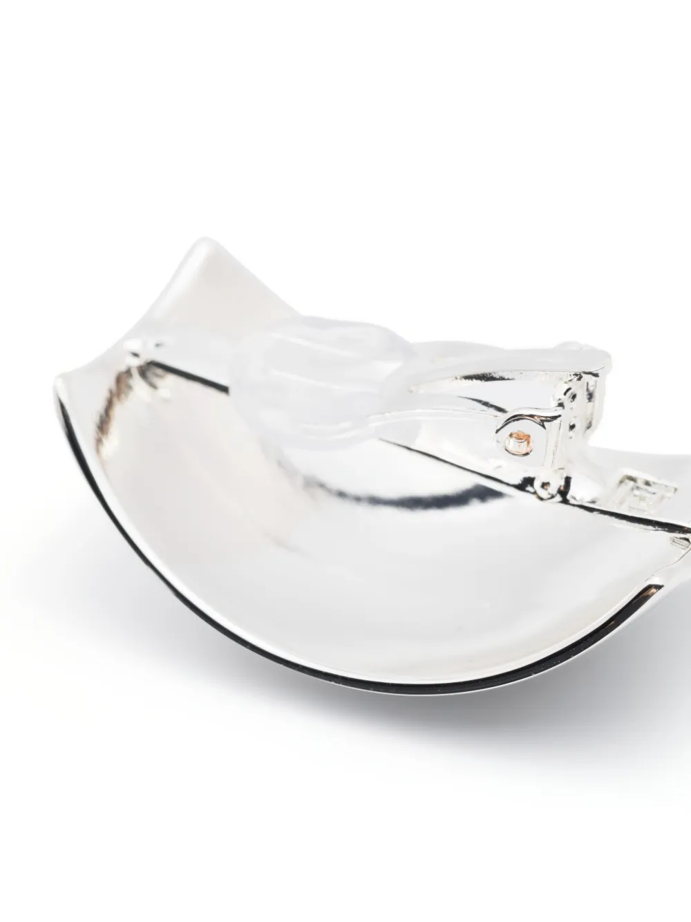 Серебристый, овальная форма, клипсы, тисненый логотип внутри и глянцевое покрытие. В комплект входят две серьги.