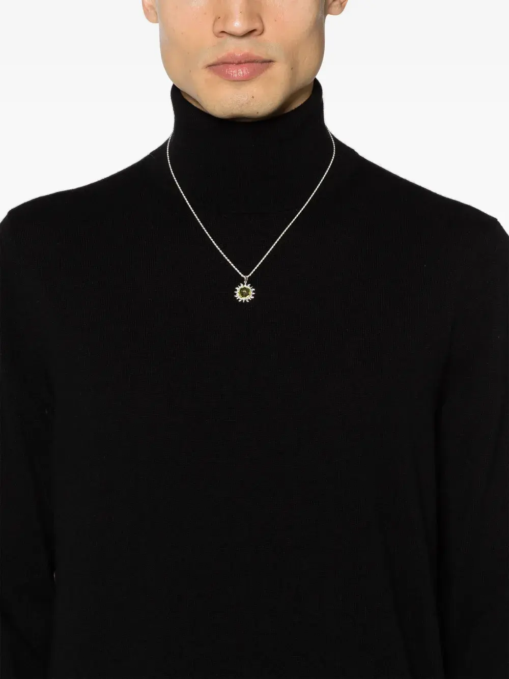 Серебристый, серебро, желтый сапфир, цепь кордового плетения, подвеска-акцент, декор с изображением солнца, застежка-карабин и глянцевая фактура.