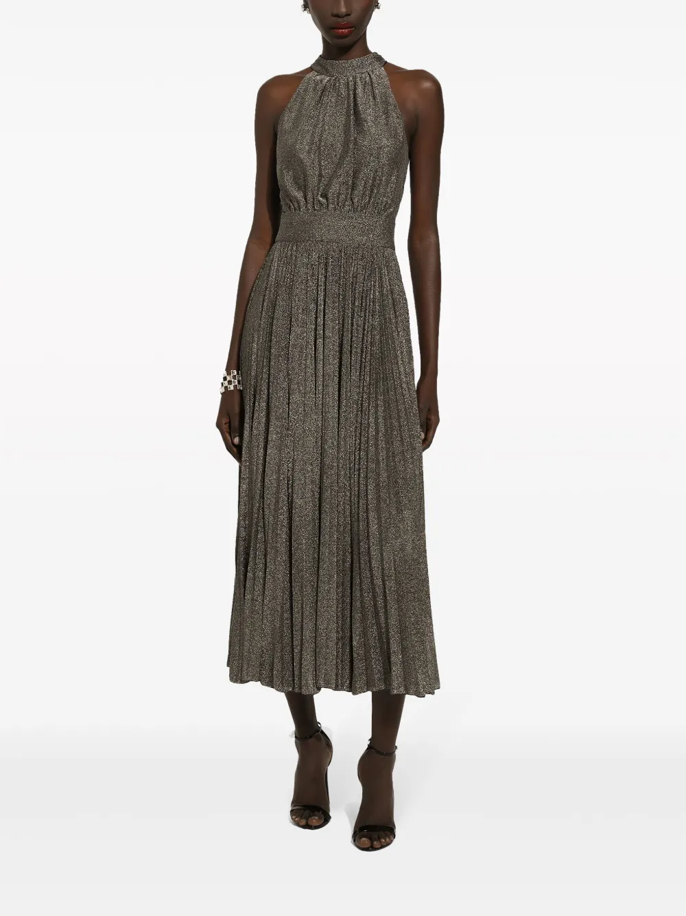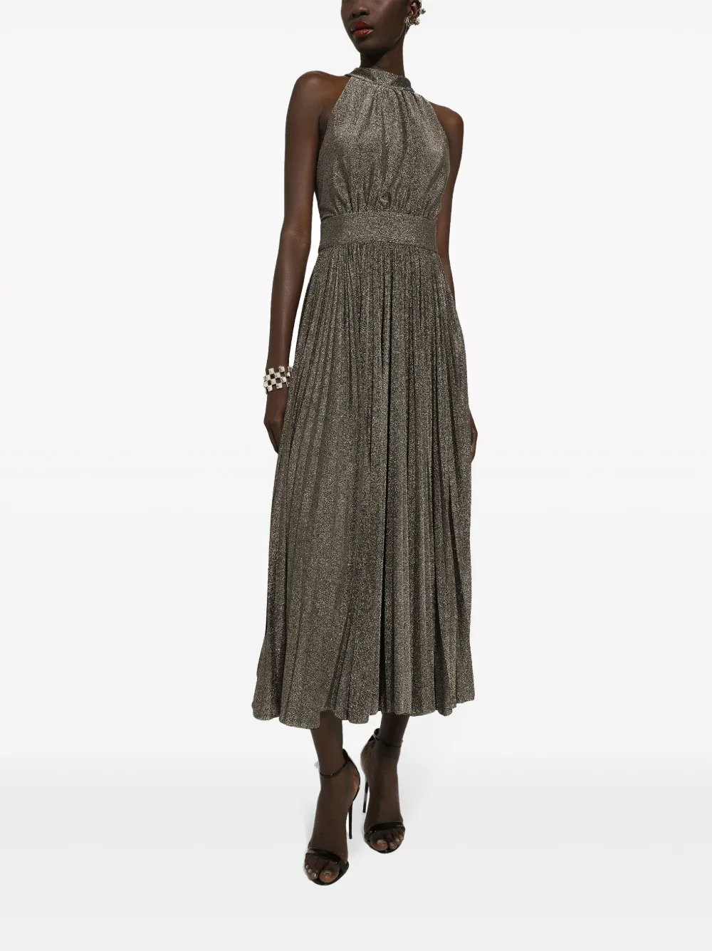 Шелковое платье миди со складками DOLCE & GABBANA, серебяный