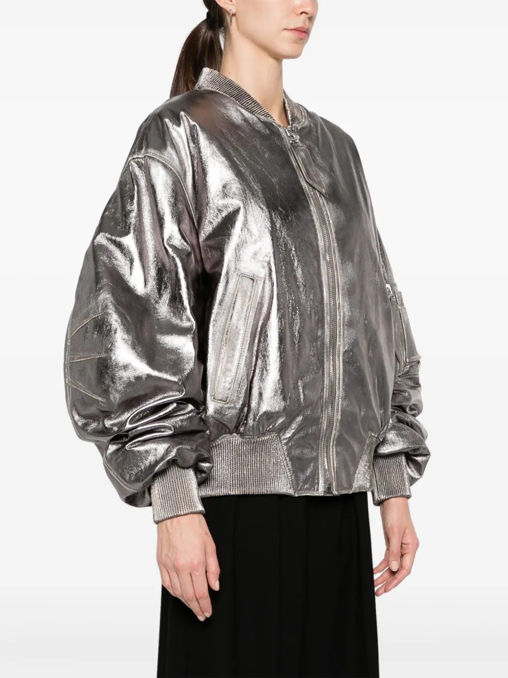 Бомбер Anja с эффектом металлик The Attico, серебяный
