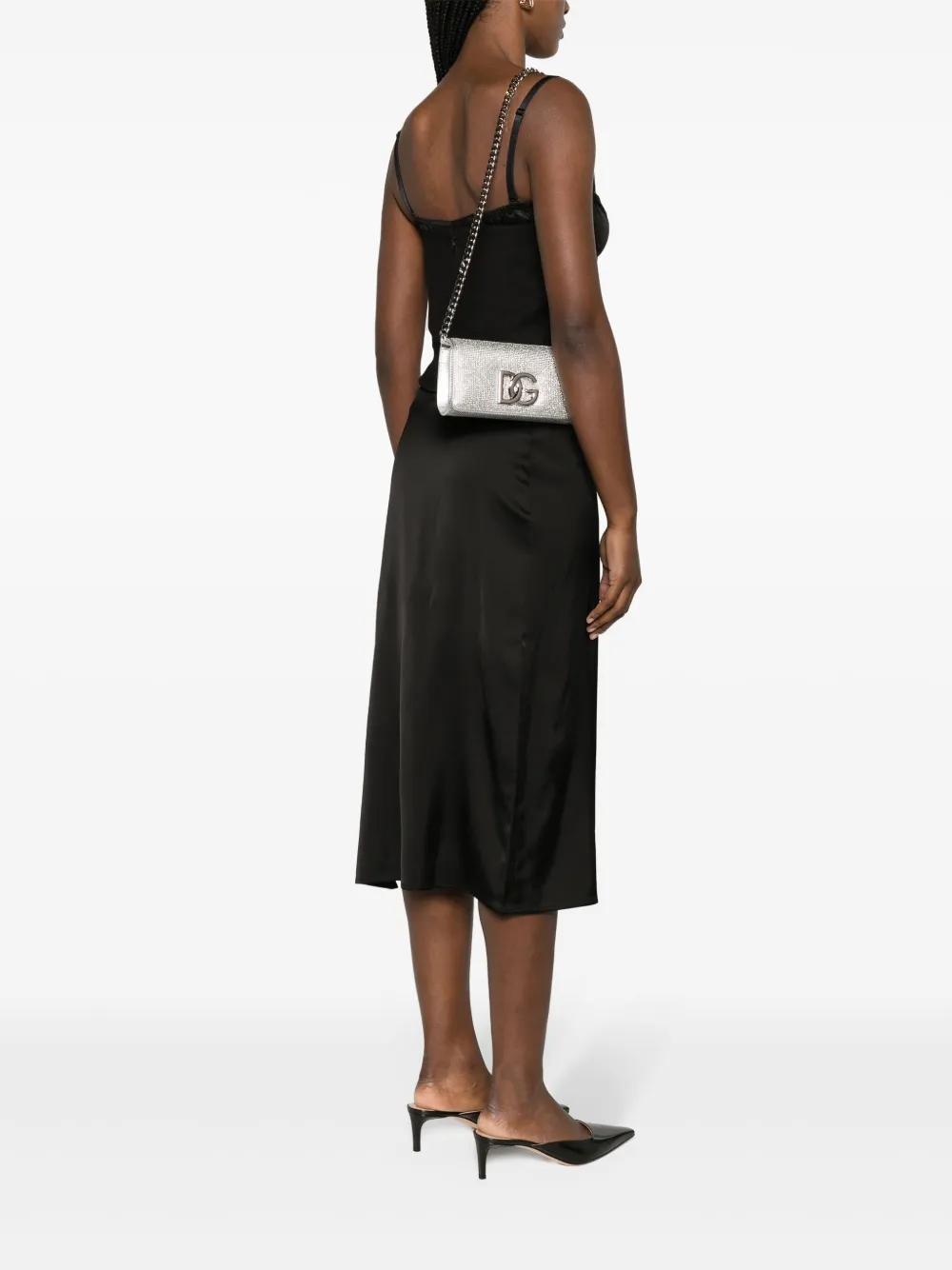 Клатч с кристаллами и логотипом DOLCE & GABBANA, серебяный