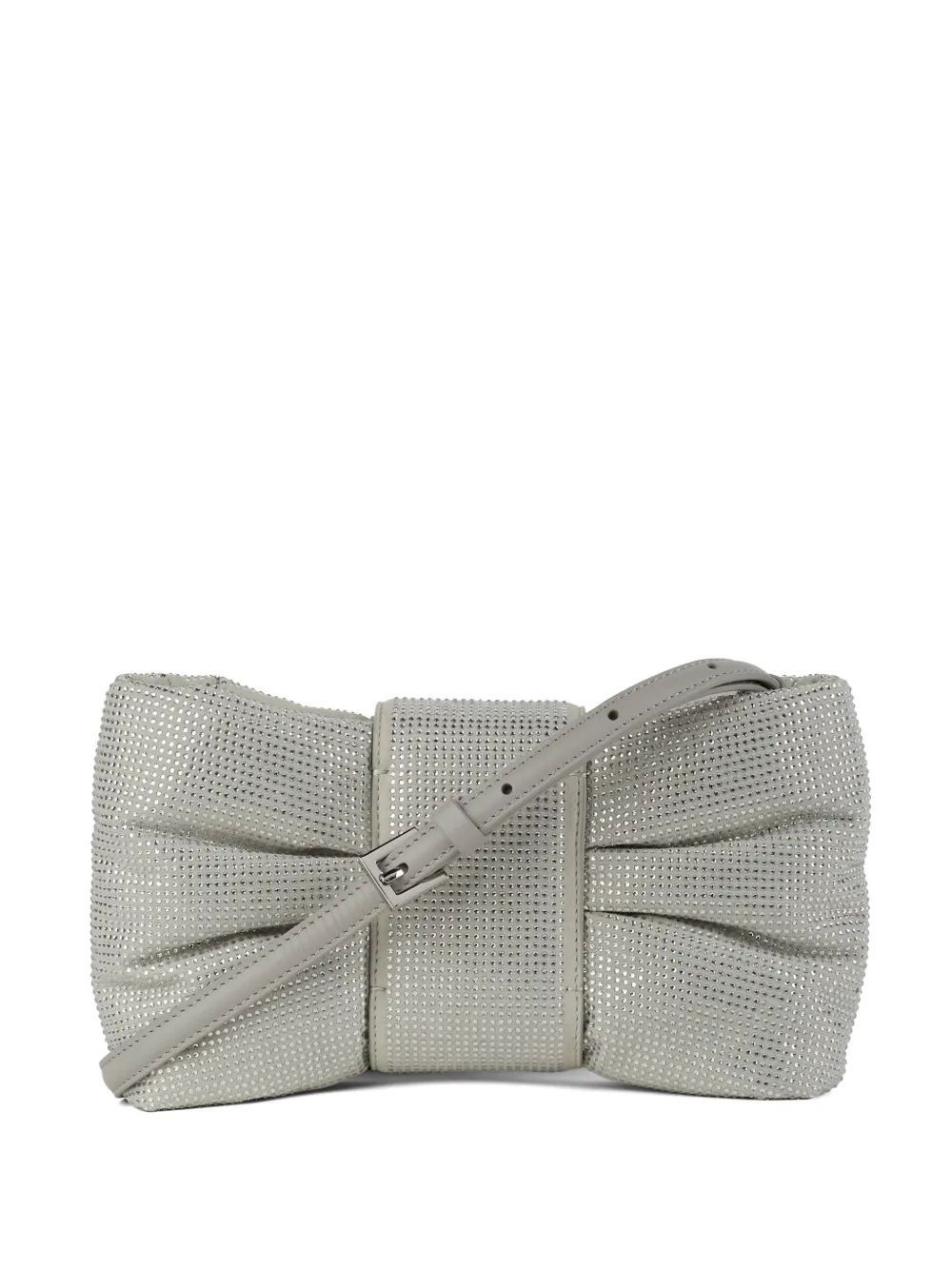 Подробнее о товаре: • серебристый • овечья кожа • бант • украшения из горного хрусталя • съемный регулируемый ремень на плечо • застежка на молнии сверху • основное отделение • внутренняя вставка с логотипом • Кожа в составе этого товара сделана на фабрике, сертифицированной организациями Leather Working Group (LWG) или ICEC. Это гарантирует, что производитель минимизировал негативное влияние материала на окружающую среду.