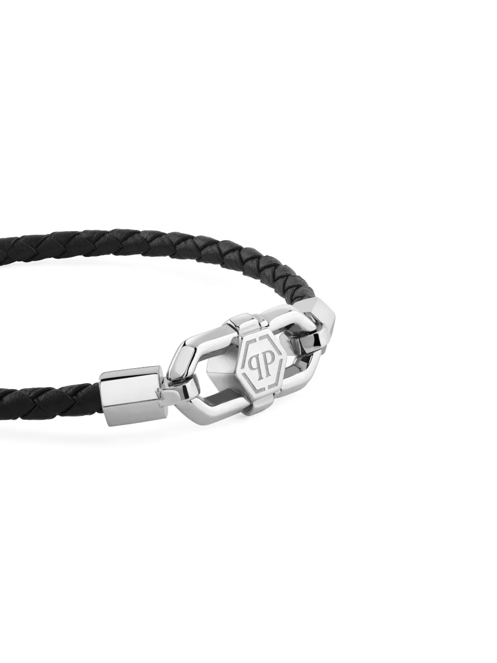 Плетеный браслет из кожи Philipp Plein, серебяный
