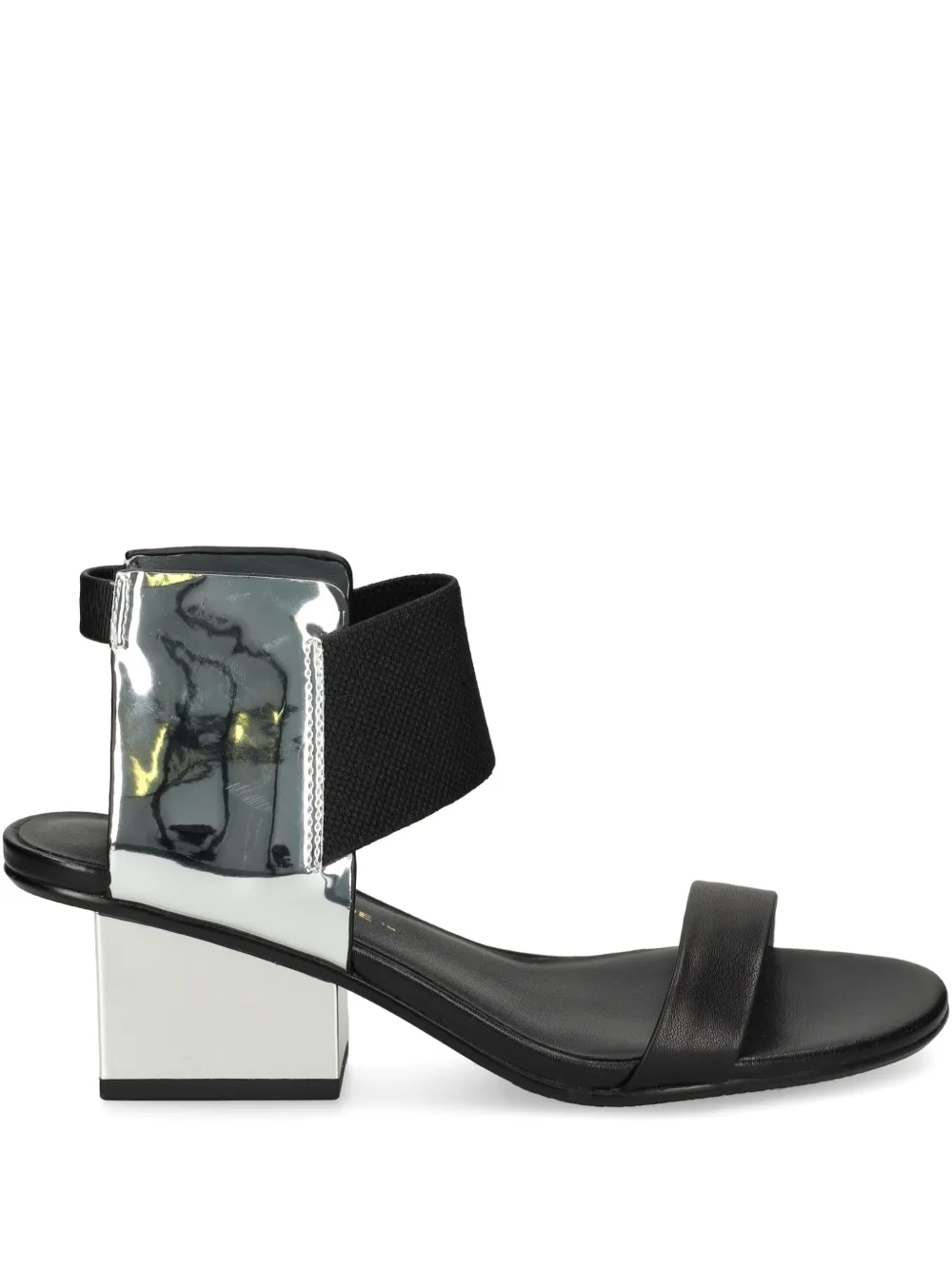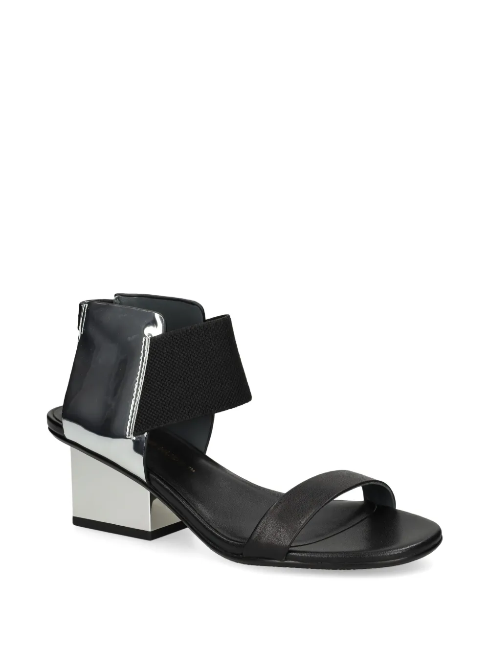 Серебристый эластичный ремешок, фирменная кожаная стелька, резиновая подошва, квадратный каблук
