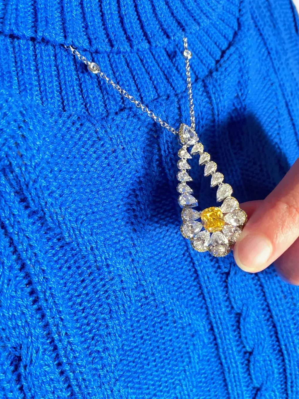 Лабораторно-выращенный синтетический желтый сапфир, Серебро 925 пробы с родиевым покрытием