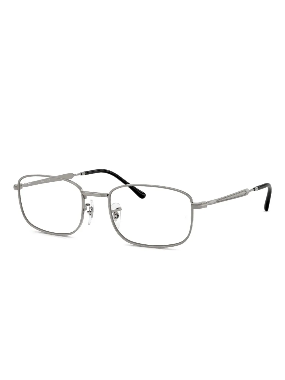 Серебристые очки прямоугольной формы с регулируемыми носоупорами, тонкими заушниками и контрастными черными наконечниками. Эти очки поставляются с защитным футляром. Все очки FARFETCH продаются в оправах без диоптрий.