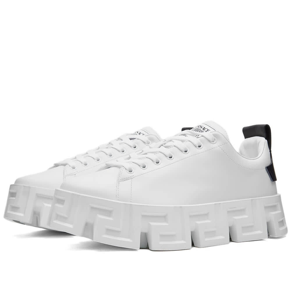 Культовый дизайн Versace Greca, вдохновленный архитектурой, в которой Джанни Версаче играл в детстве, занимает центральное место в этих кроссовках, поднимая верх из гладкой кожи на новую высоту. В то же время логотип наследия украшает пятку, обеспечивая безошибочный внешний вид со всех сторон.