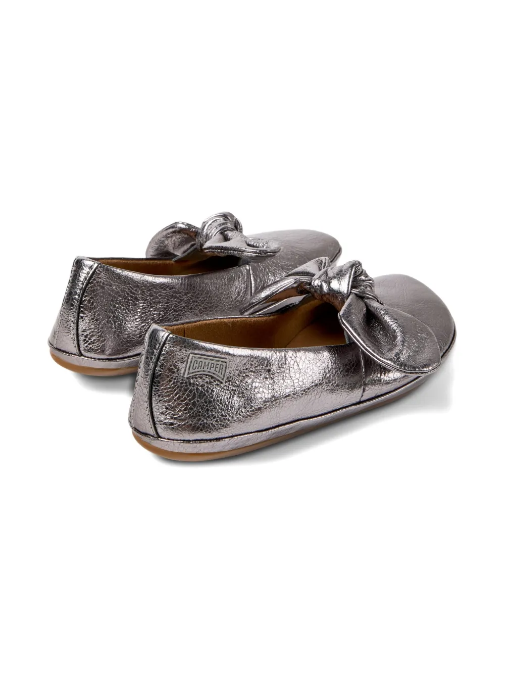 Кожаные балетки с бантом справа Camper Kids, серебяный