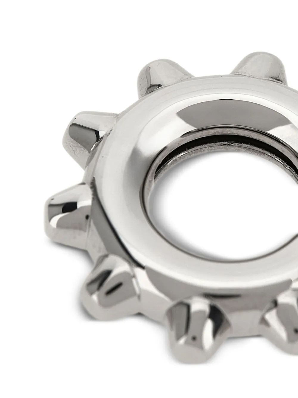 Изготовлена вручную из латуни серебристого оттенка, круглая форма, открытый дизайн. Это одиночная серьга.