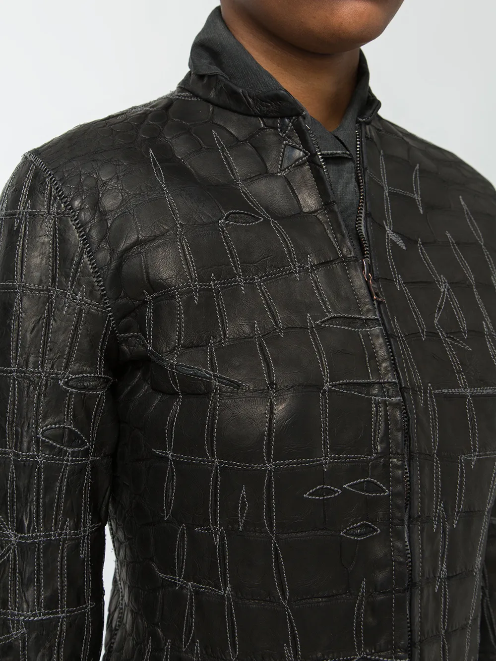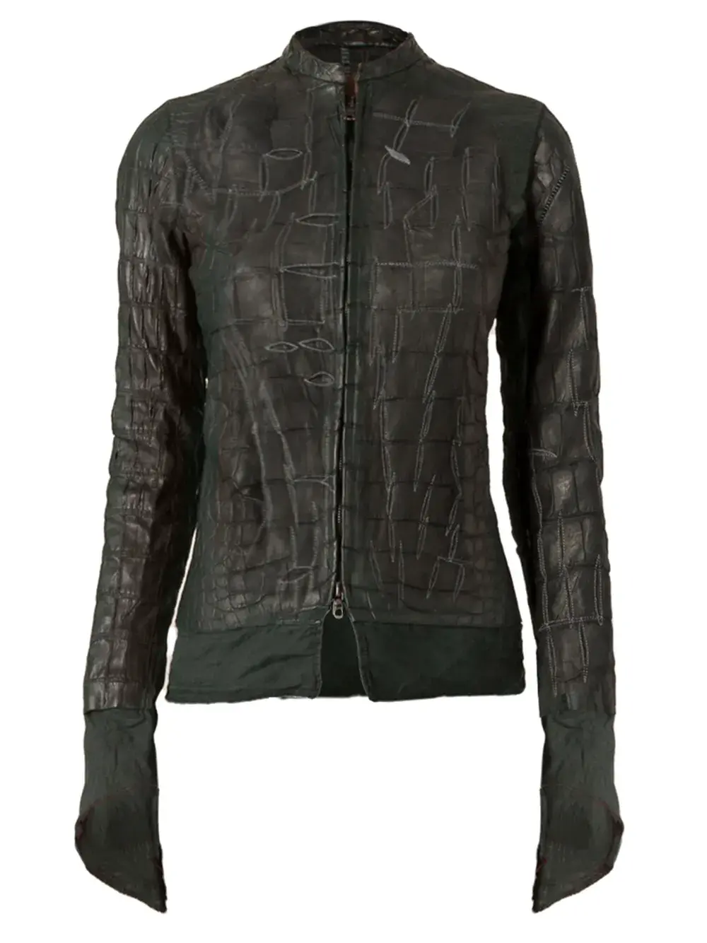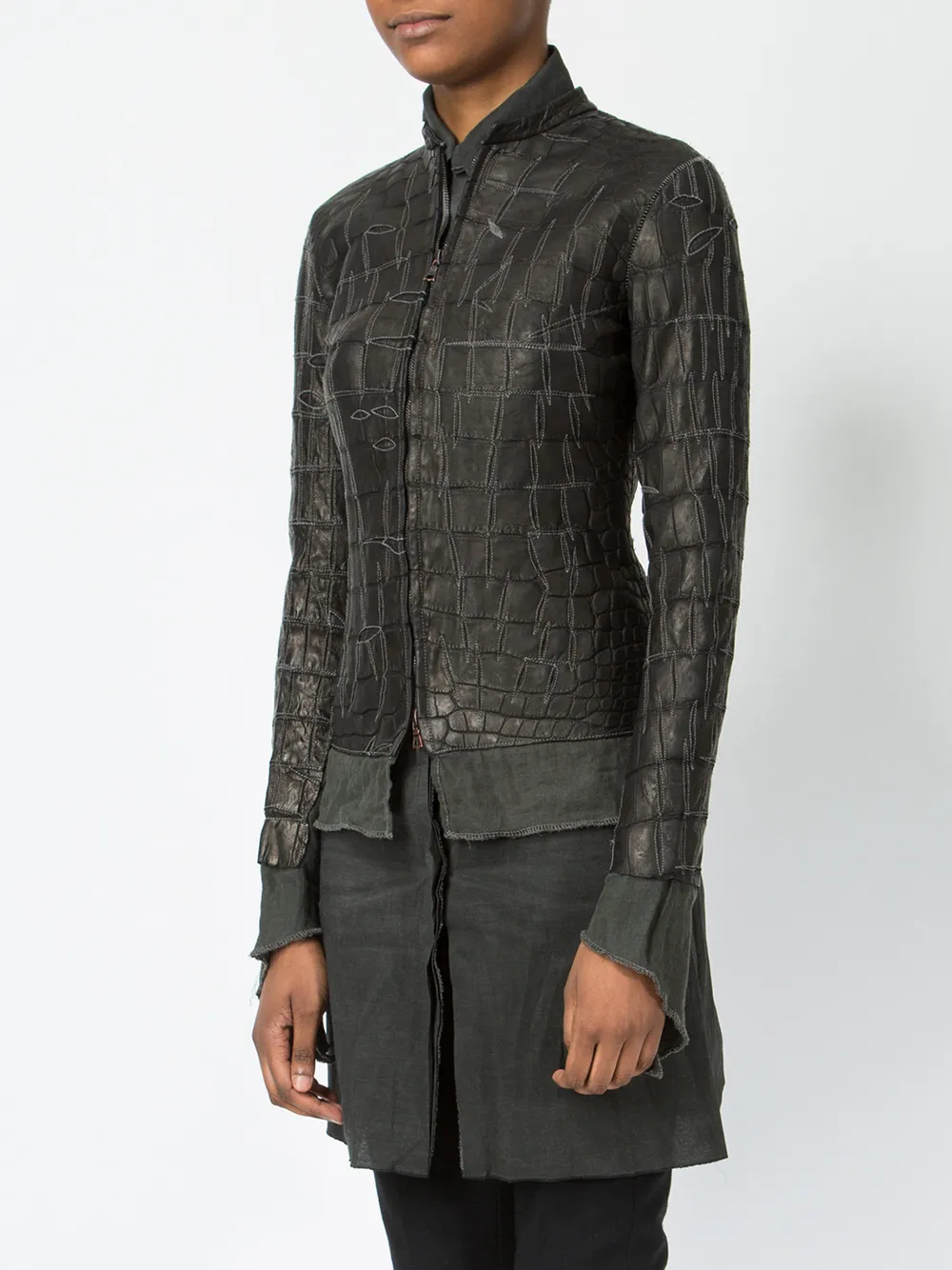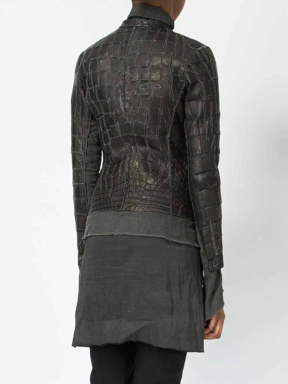 Серый пиджак 'Affamee' из кожи аллигатора от Isaac Sellam Experience. Пожалуйста, обратите внимание, что эта вещь не может быть отправлена за пределы ЕС.