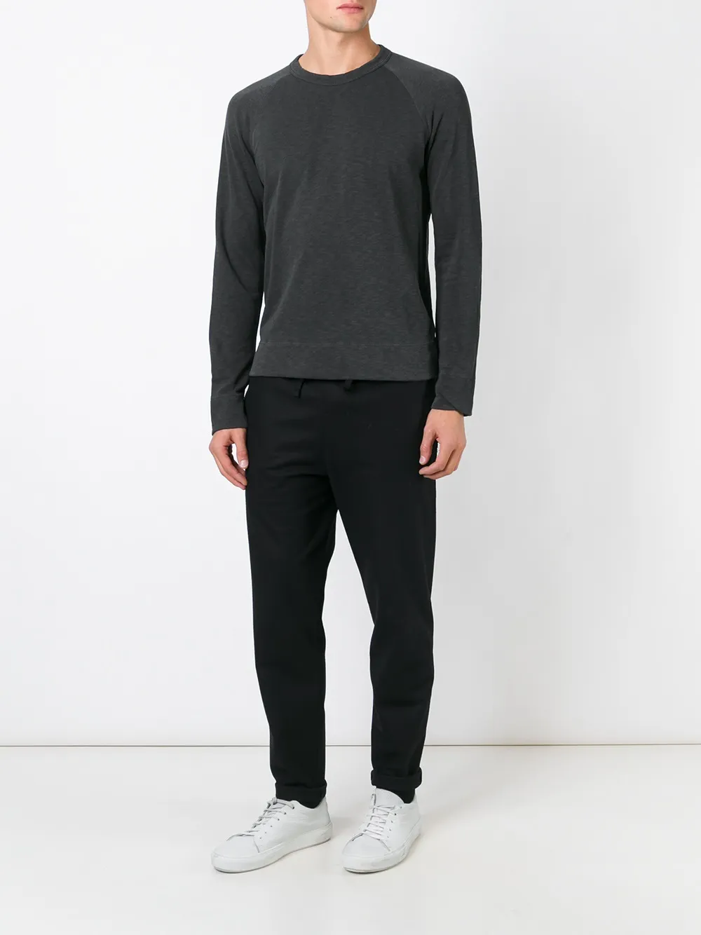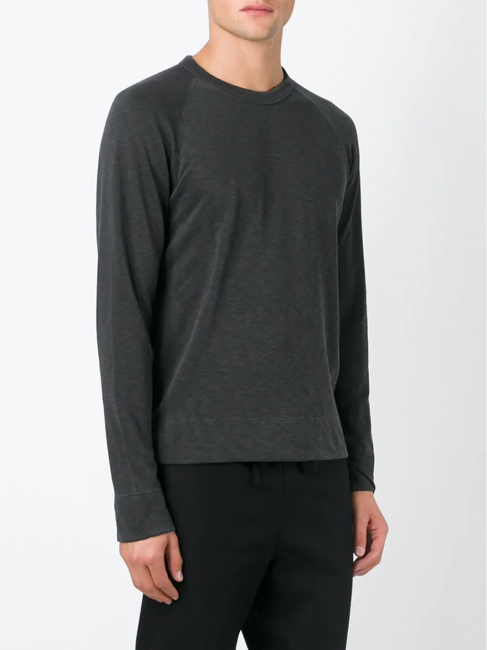 Серая хлопковая футболка с длинными рукавами от James Perse.