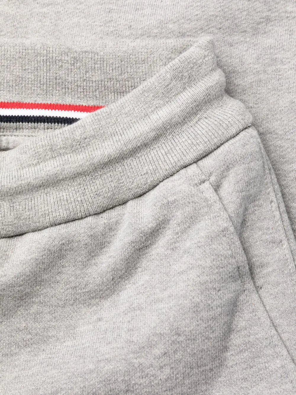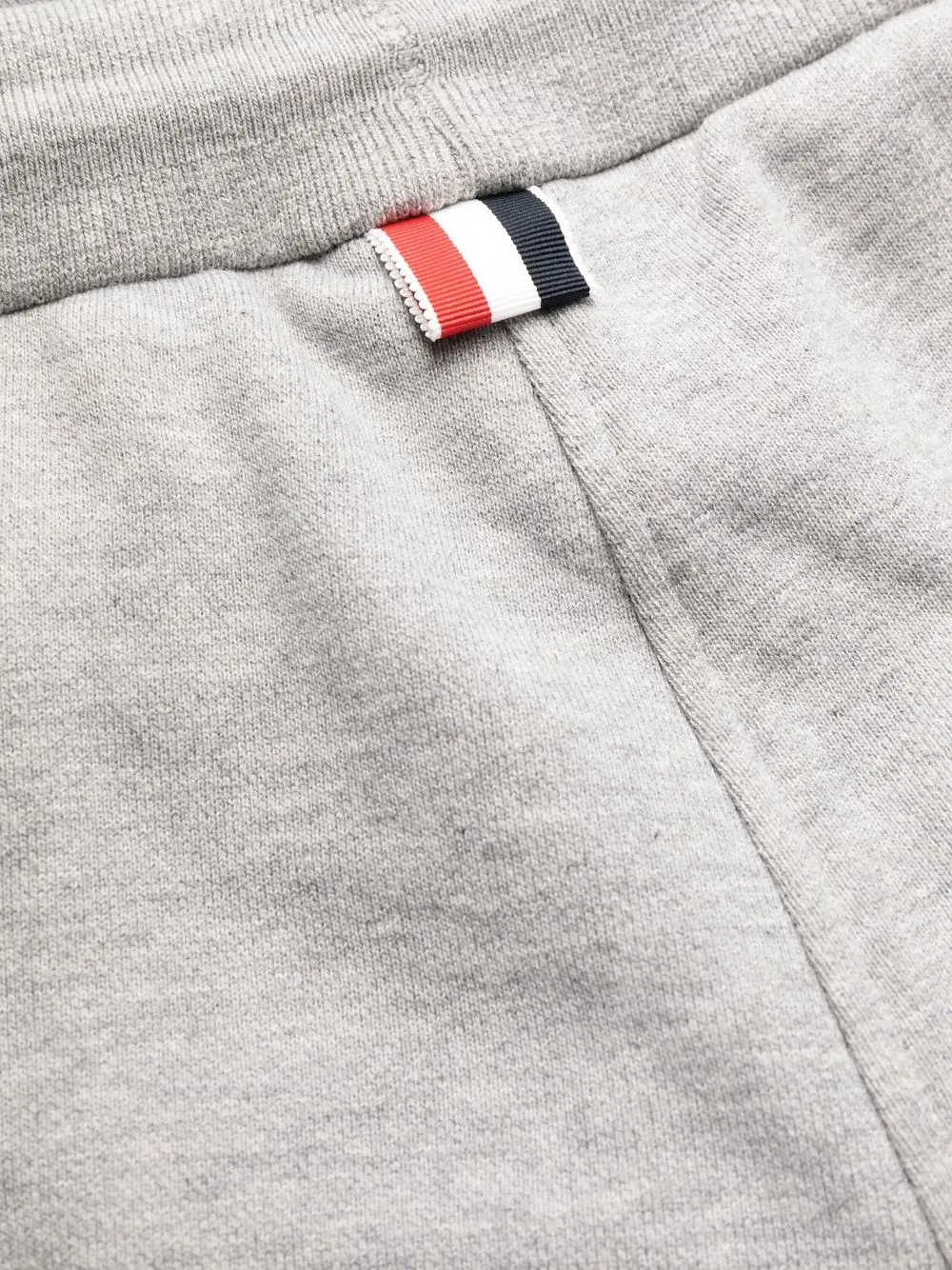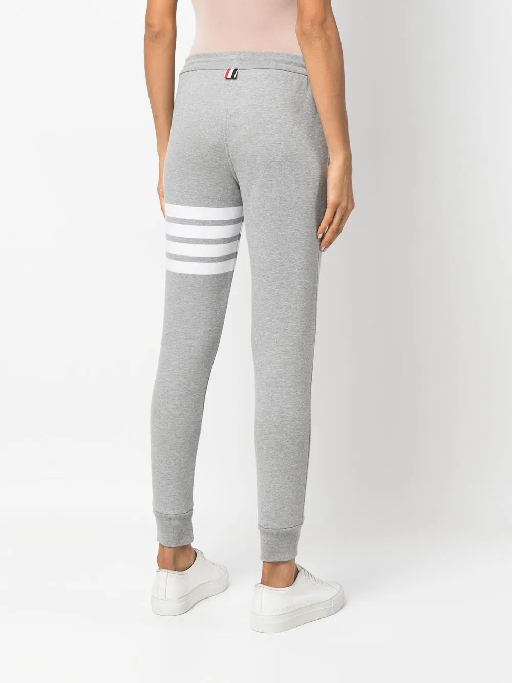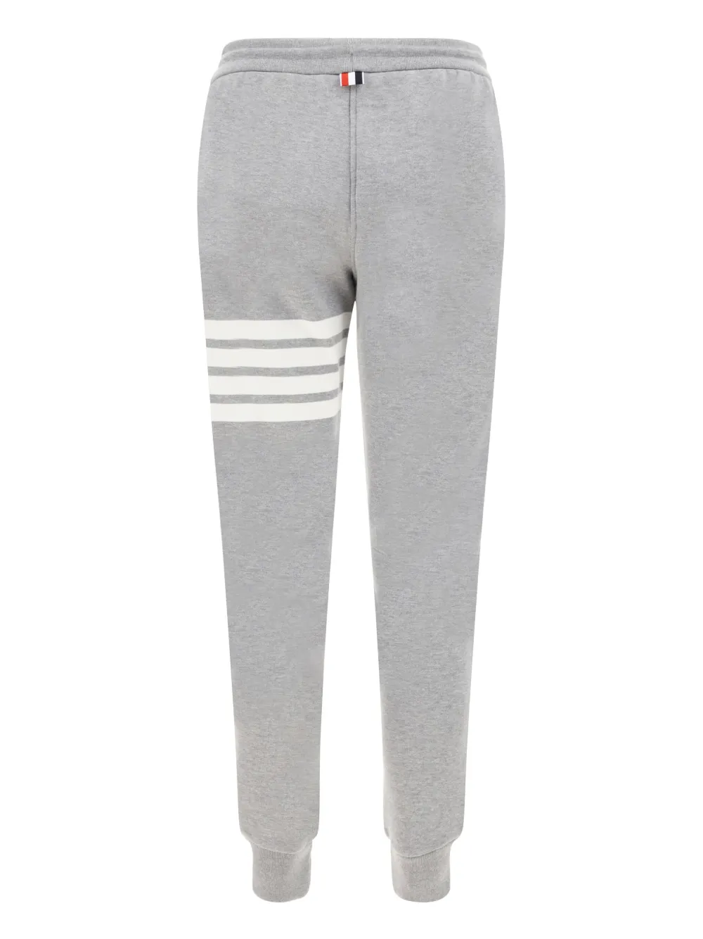Светло-серые хлопковые спортивные брюки с полосками от Thom Browne.