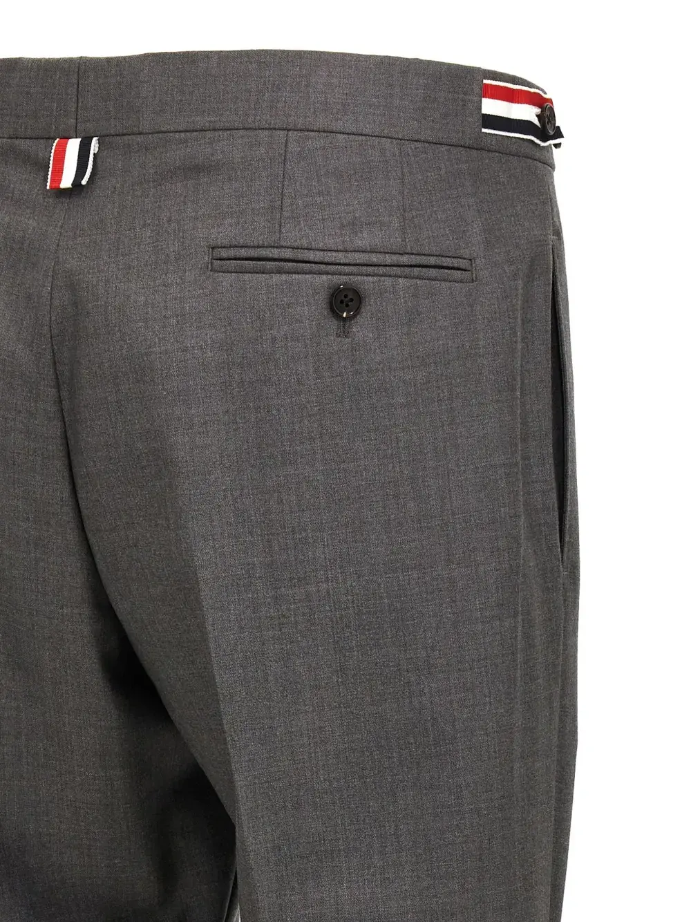 Серые шерстяные брюки строгого кроя от Thom Browne.