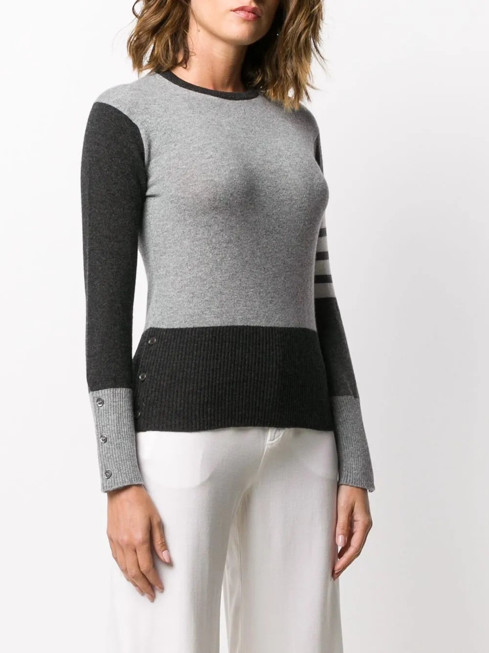 Кашемировый джемпер с полосками 4-Bar THOM BROWNE, серый