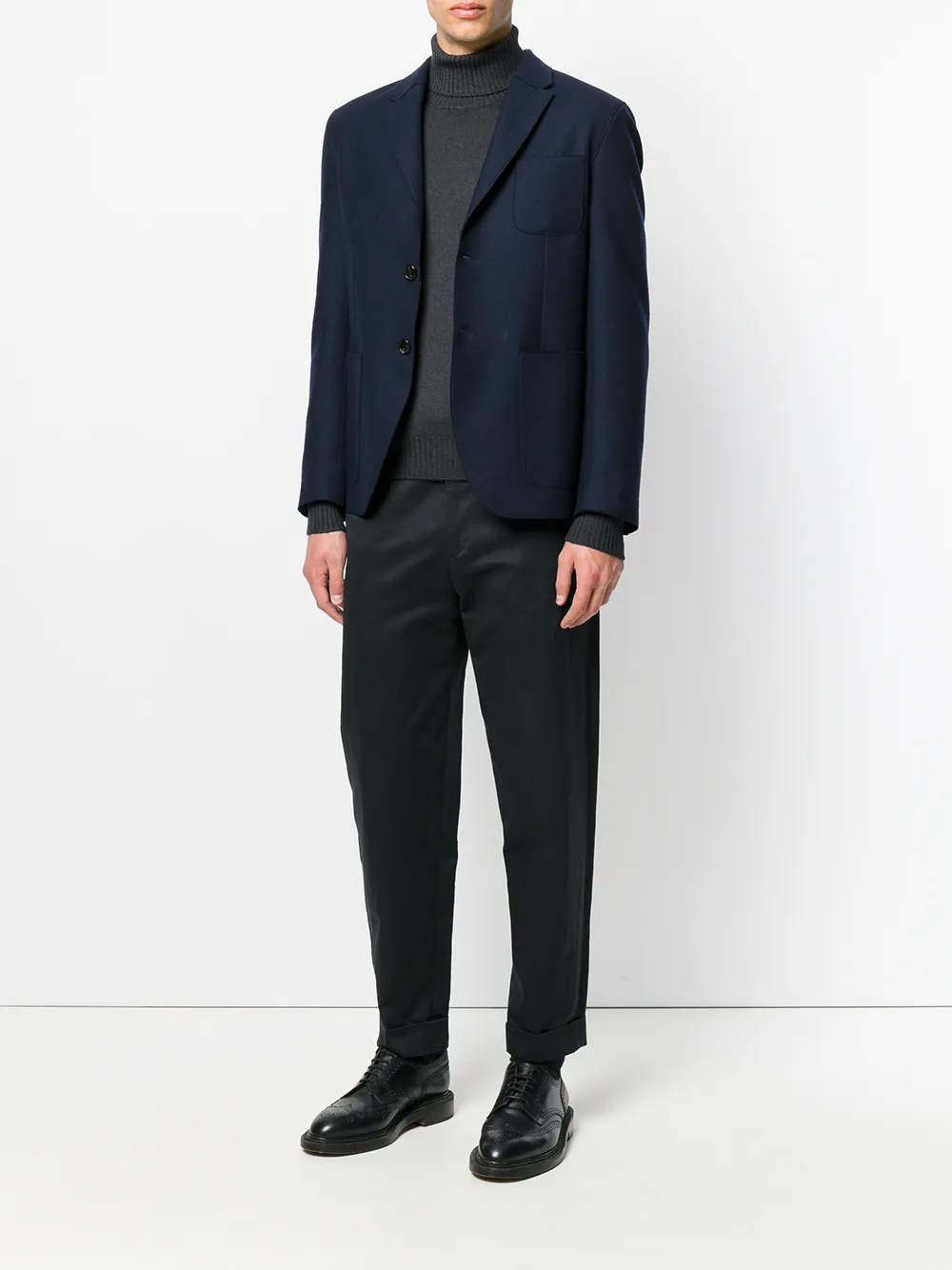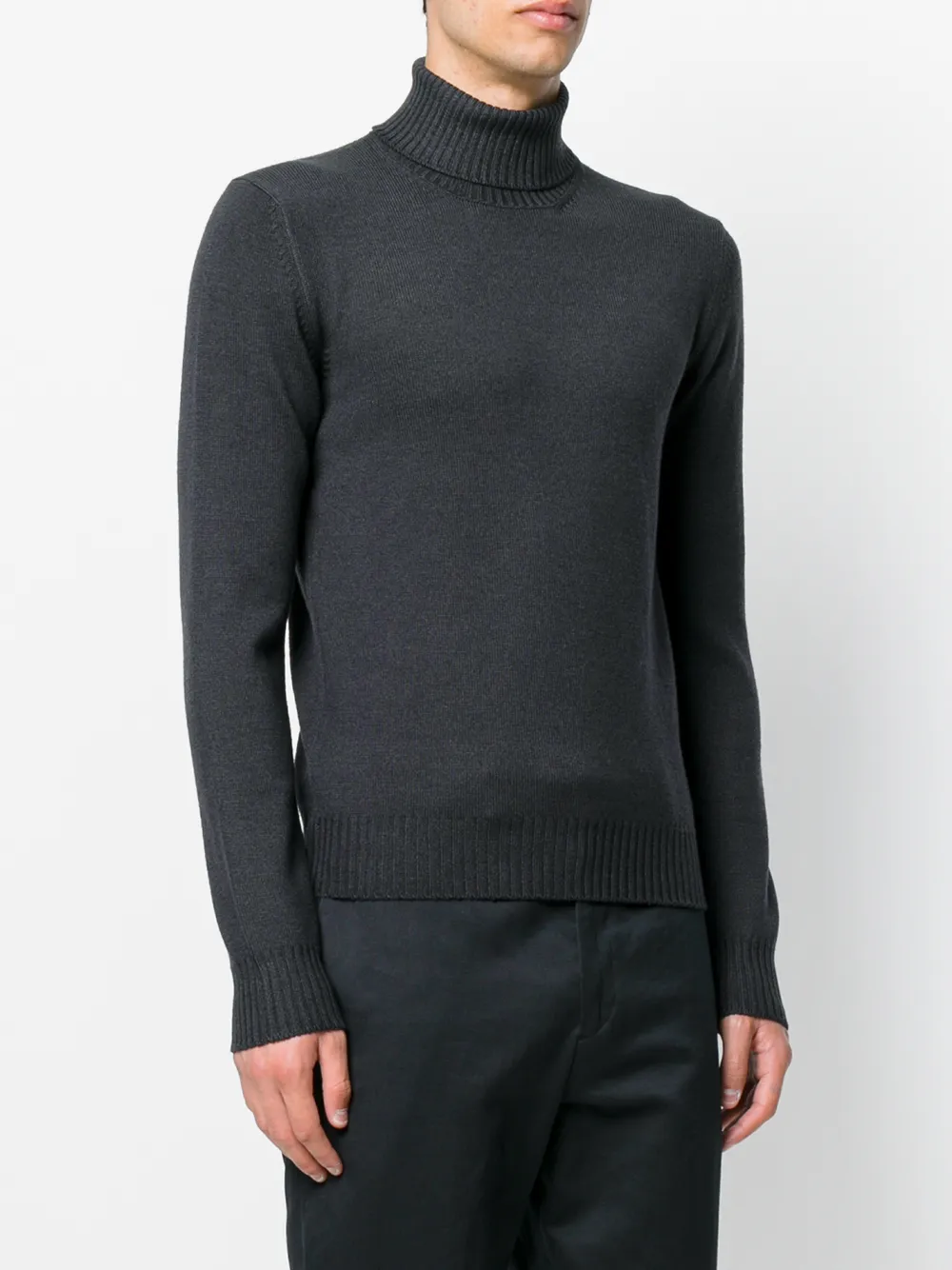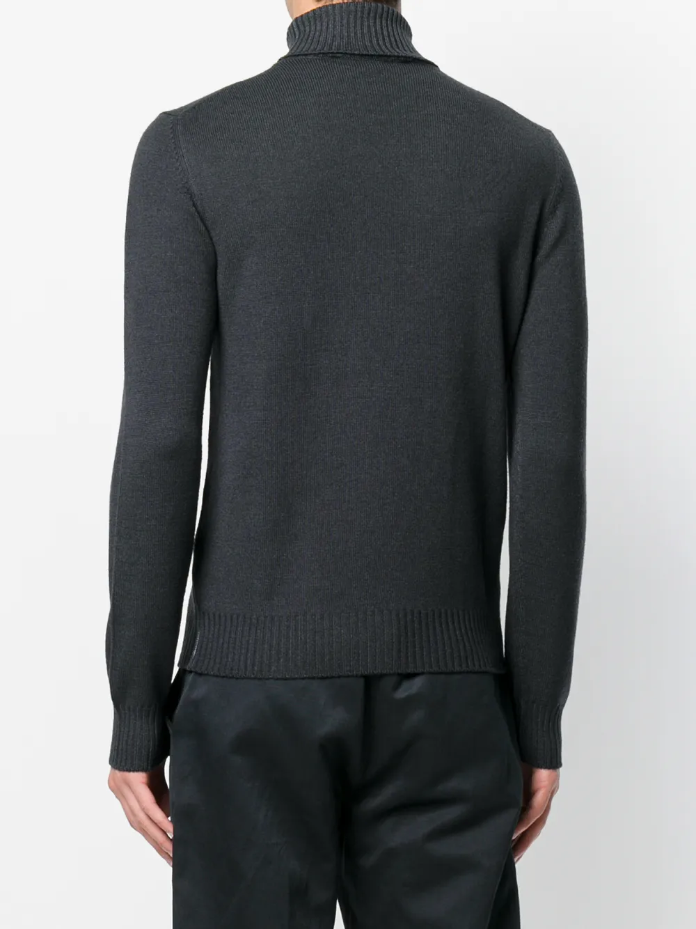 Серый пуловер с отворотной горловиной из натуральной шерсти от La Fileria For D'aniello.