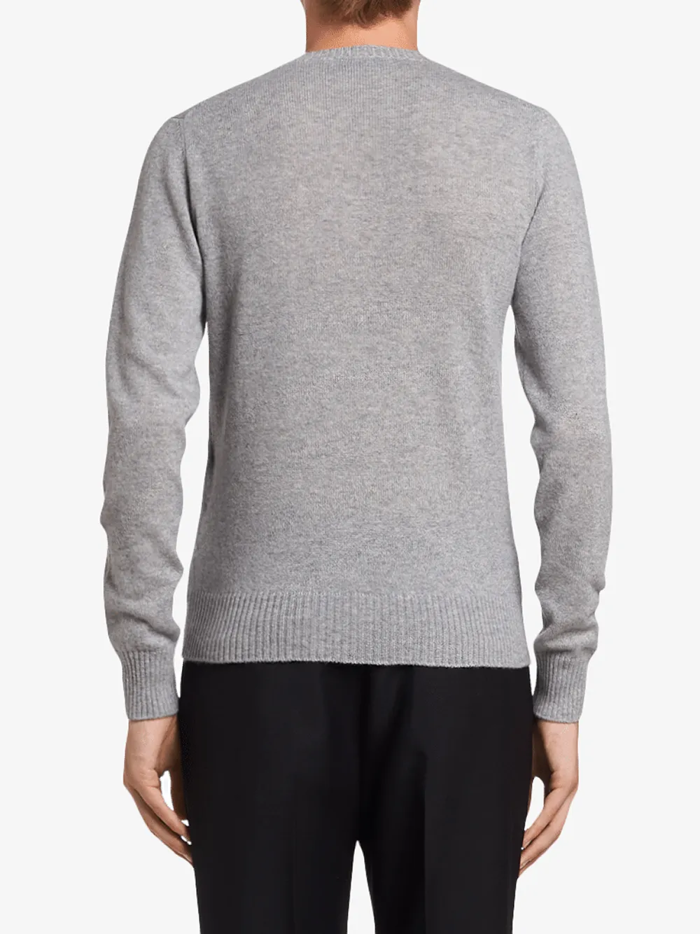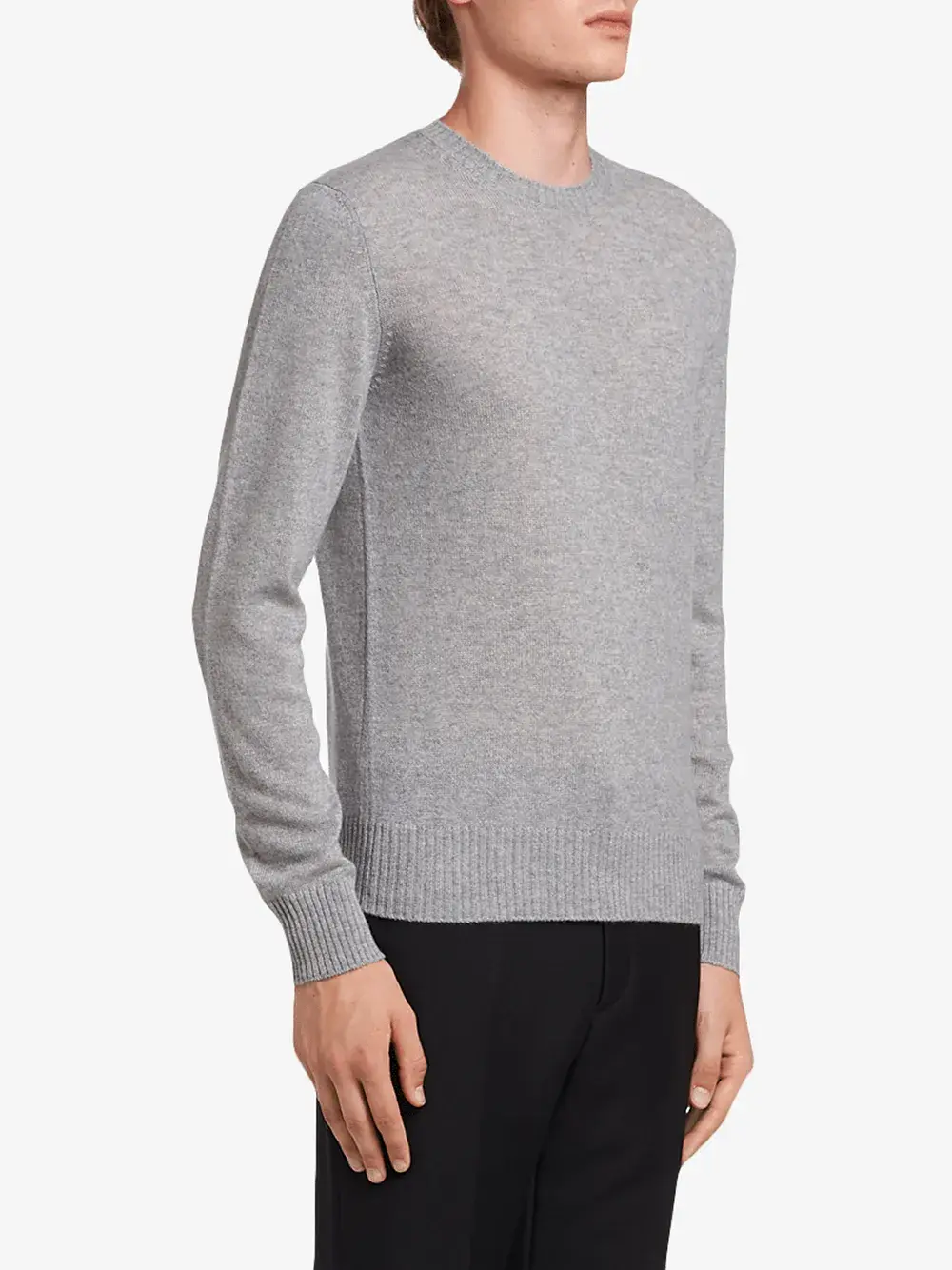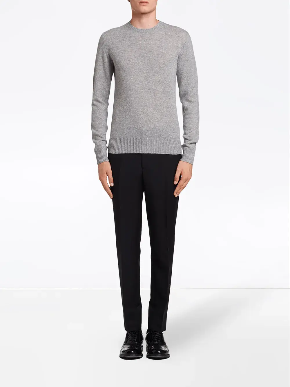 Серый кашемировый свитер с круглым вырезом от Prada.