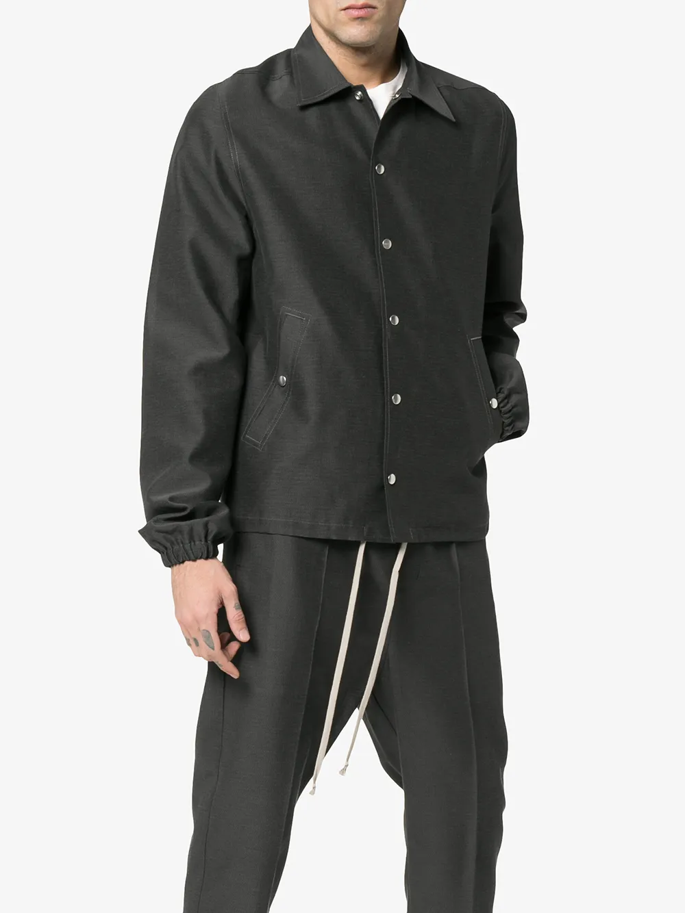 Куртка с пуговицами от Rick Owens (Рик Оуэнс). Классический воротник и длинные рукава. Цвет: серый.