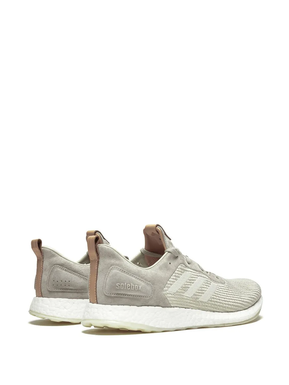 Серые кроссовки PureBOOST DPR Solebox от adidas (Адидас) вышли в рамках коллаборации Solebox x adidas в мае 2018 года. Текстильный верх Primeknit, петля для подтягивания сзади, плоская подошва, три полоски сбоку, передняя шнуровка, нубуковые вставки на заднике и язычке, тисненый логотип Solebox, кожаные петли для подтягивания, промежуточная подошва Boost.