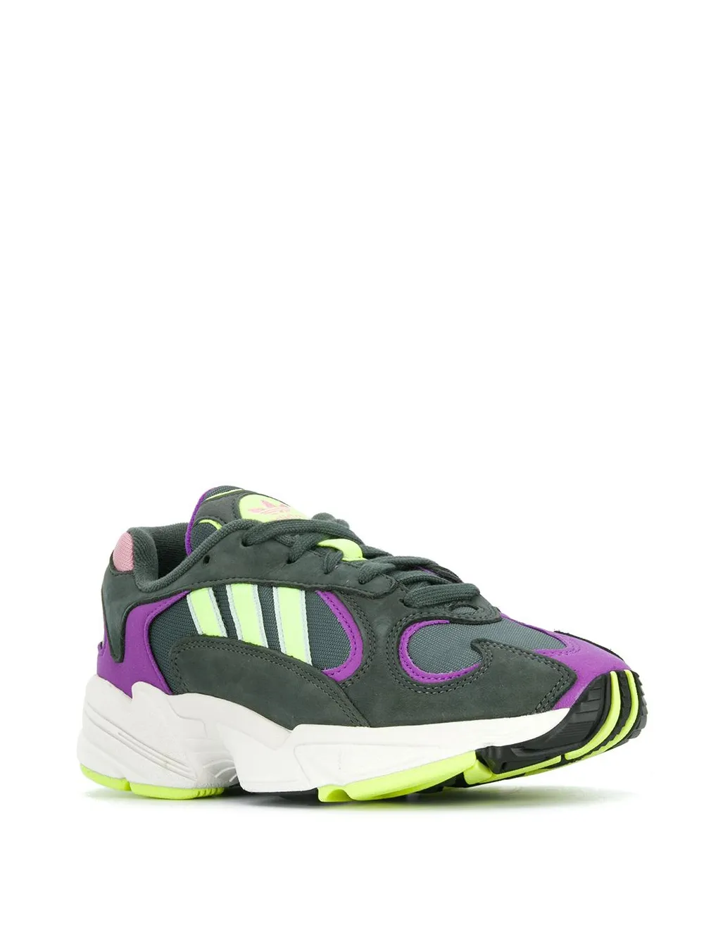 Кроссовки Yung-1 от adidas (Адидас). Верх в сетку, контрастные панели, заплатка с логотипом на язычке, фирменная деталь с тремя полосками, неоновая отделка и застежка на шнуровке.