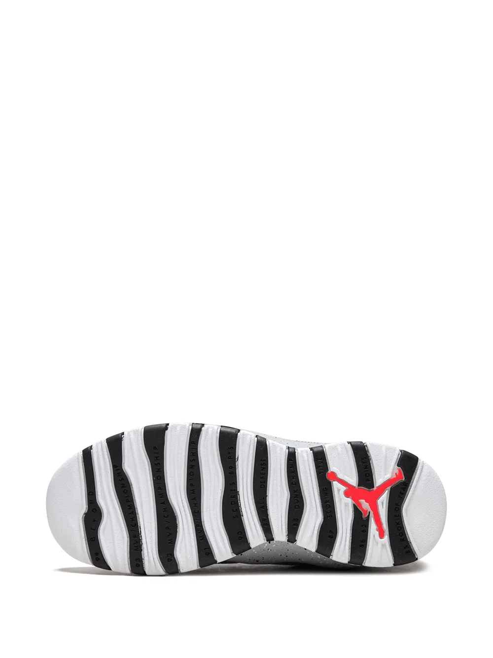 Кроссовки Air Jordan 10 Retro от Jordan. Закругленный носок, петля для подтягивания сзади и ребристая резиновая подошва.