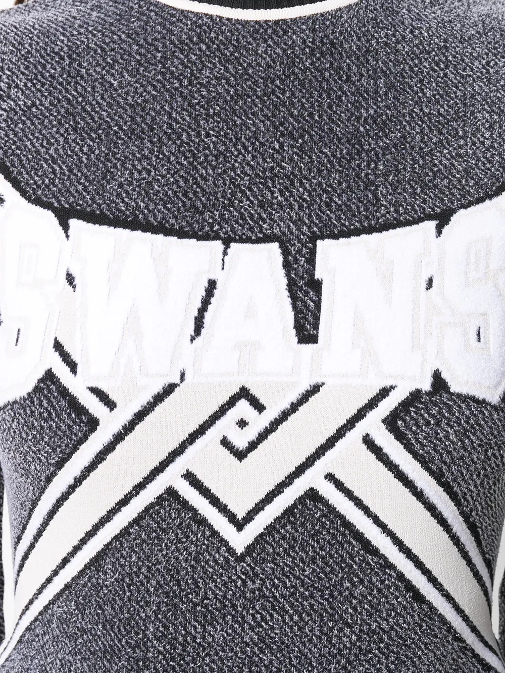 Стритстайл в новом переосмыслении - визитная карточка Off-White. Даже классические предметы гардероба получают свежую интерпретацию. Среди моделей новой коллекции -трикотажный топ черного, серого и белого цвета с логотипом от Off-White. Круглый вырез под горло в рубчик, длинные рукава, подол и манжеты в рубчик, прямой подол и вязка интарсия. Сделано в Италии.