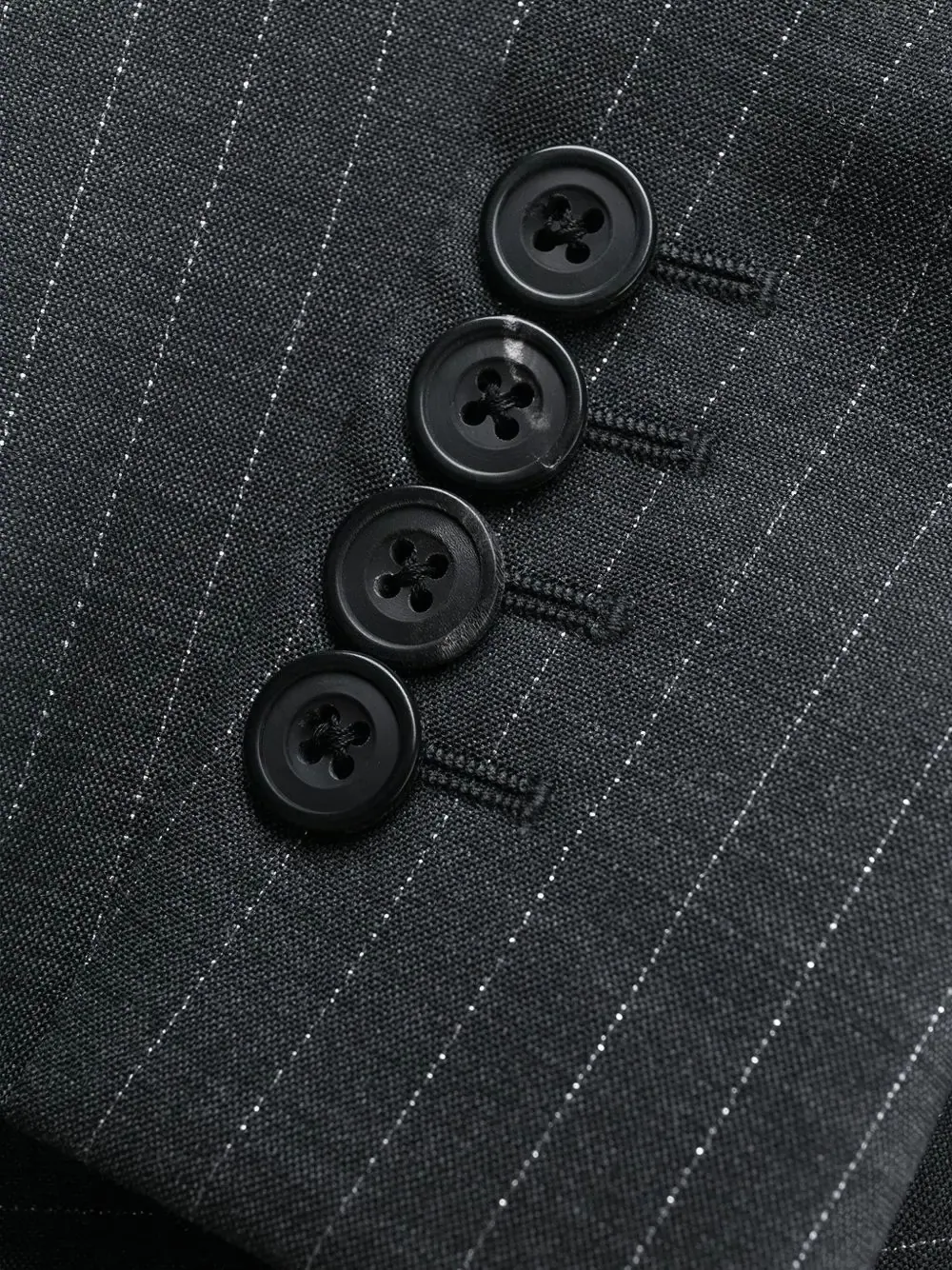 Декорированный блейзер в тонкую полоску от Alexander McQueen (Александр Маккуин). Заостренные лацканы, длинные рукава, нагрудный карман, застежка на пуговицах спереди и передние карманы с клапанами. Цвет: серый.