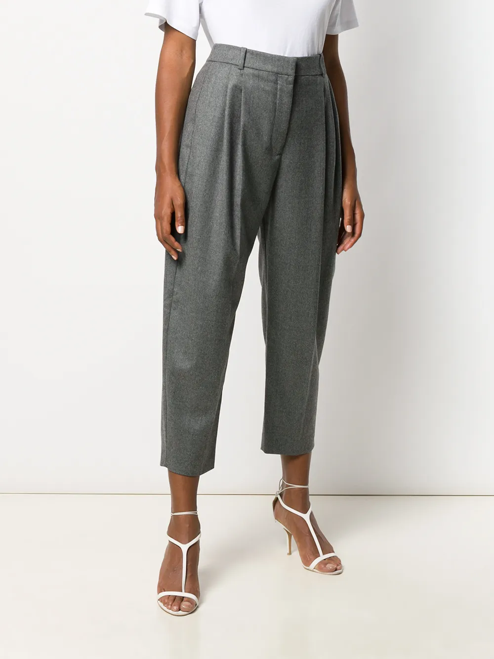 Подробнее о товаре: Укороченные брюки строгого кроя от Stella McCartney (Стелла Маккартни). Пояс с петлями для ремня, потайная застежка, деталь со складками, боковые карманы, задний карман с листочкой и обрезанная длина. Цвет: серый. Choose Positively: У каждой вещи - своя история. Этот бренд гарантирует, что она отвечает принципам социальной ответственности и заботы об окружающей среде.