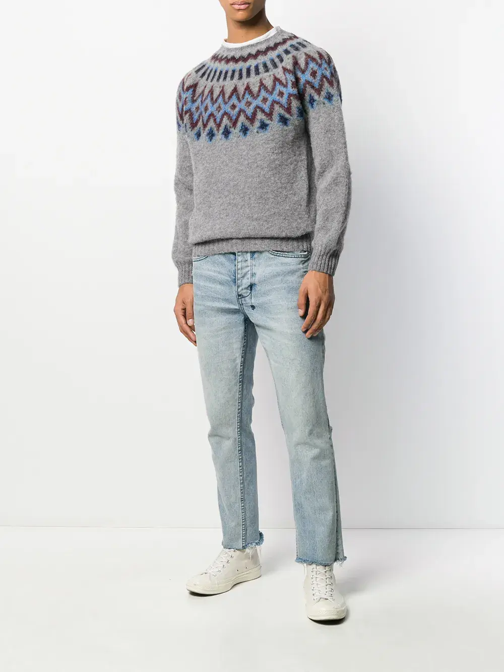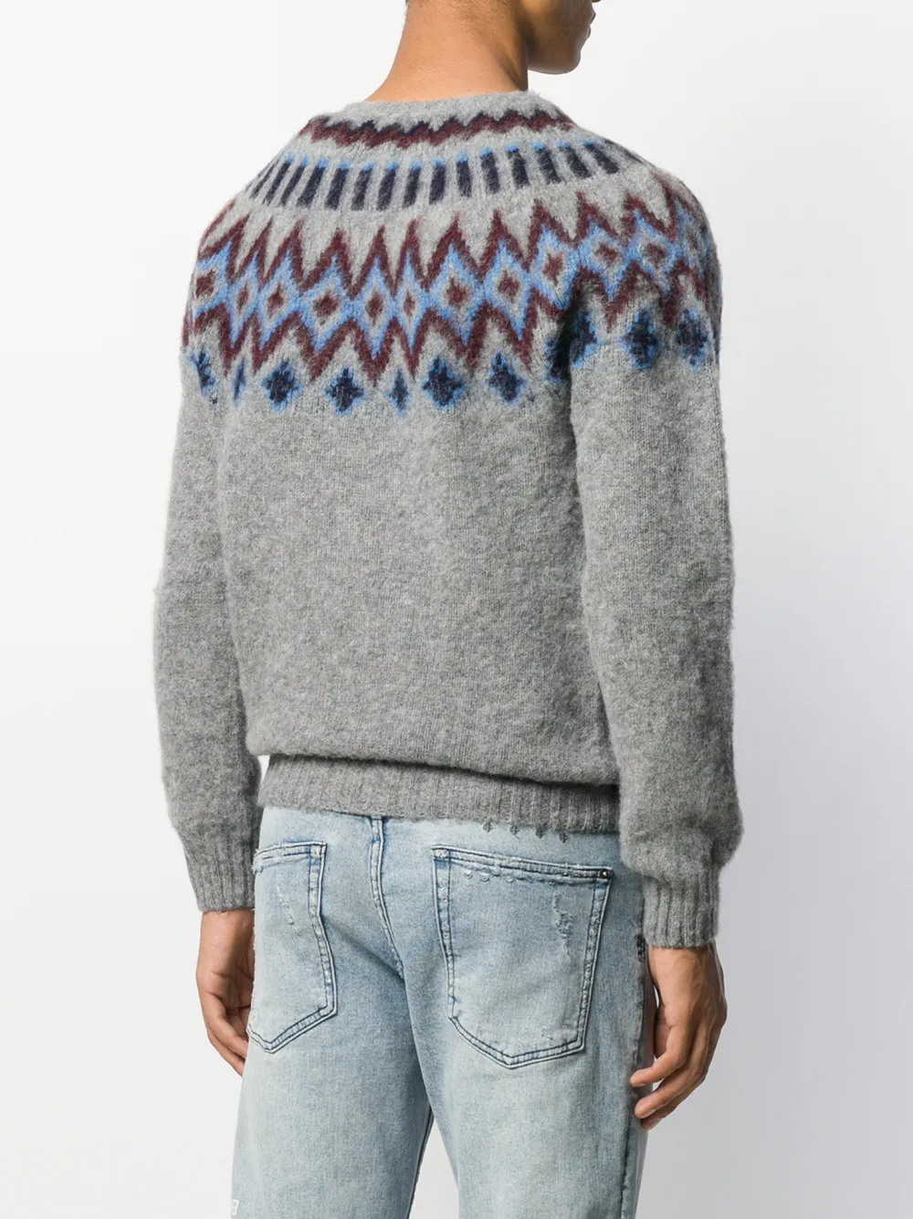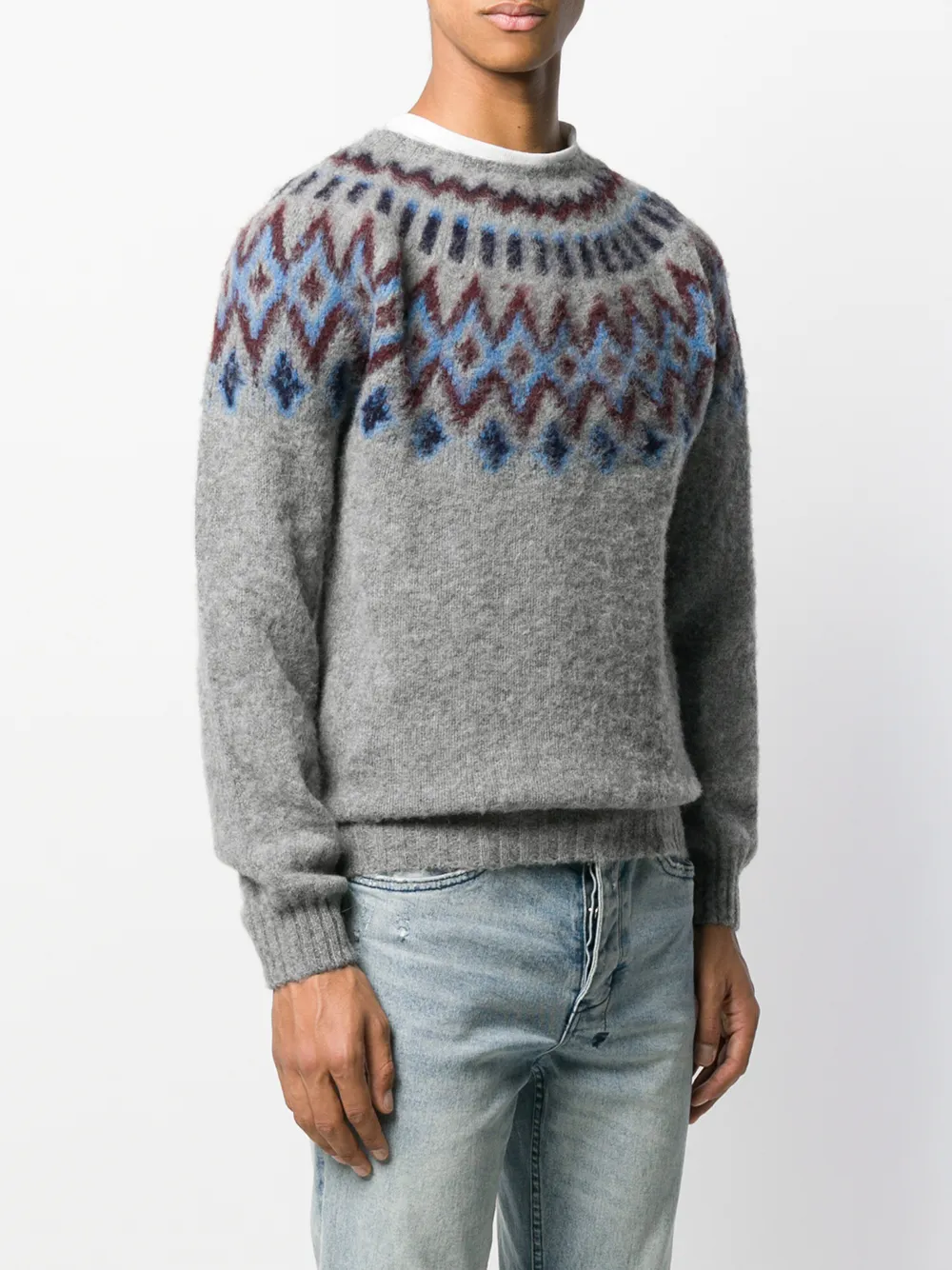 Джемпер Future Fantasy от Howlin'. Жаккардовое вязание, круглый вырез под горло, длинные рукава и подол и манжеты в рубчик. Цвет: серый.