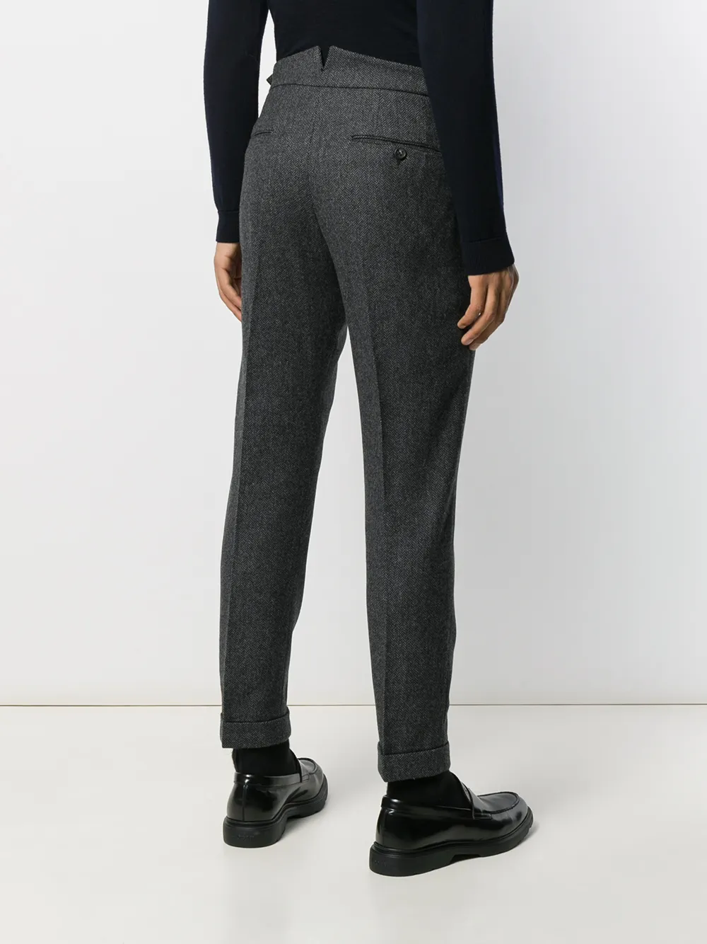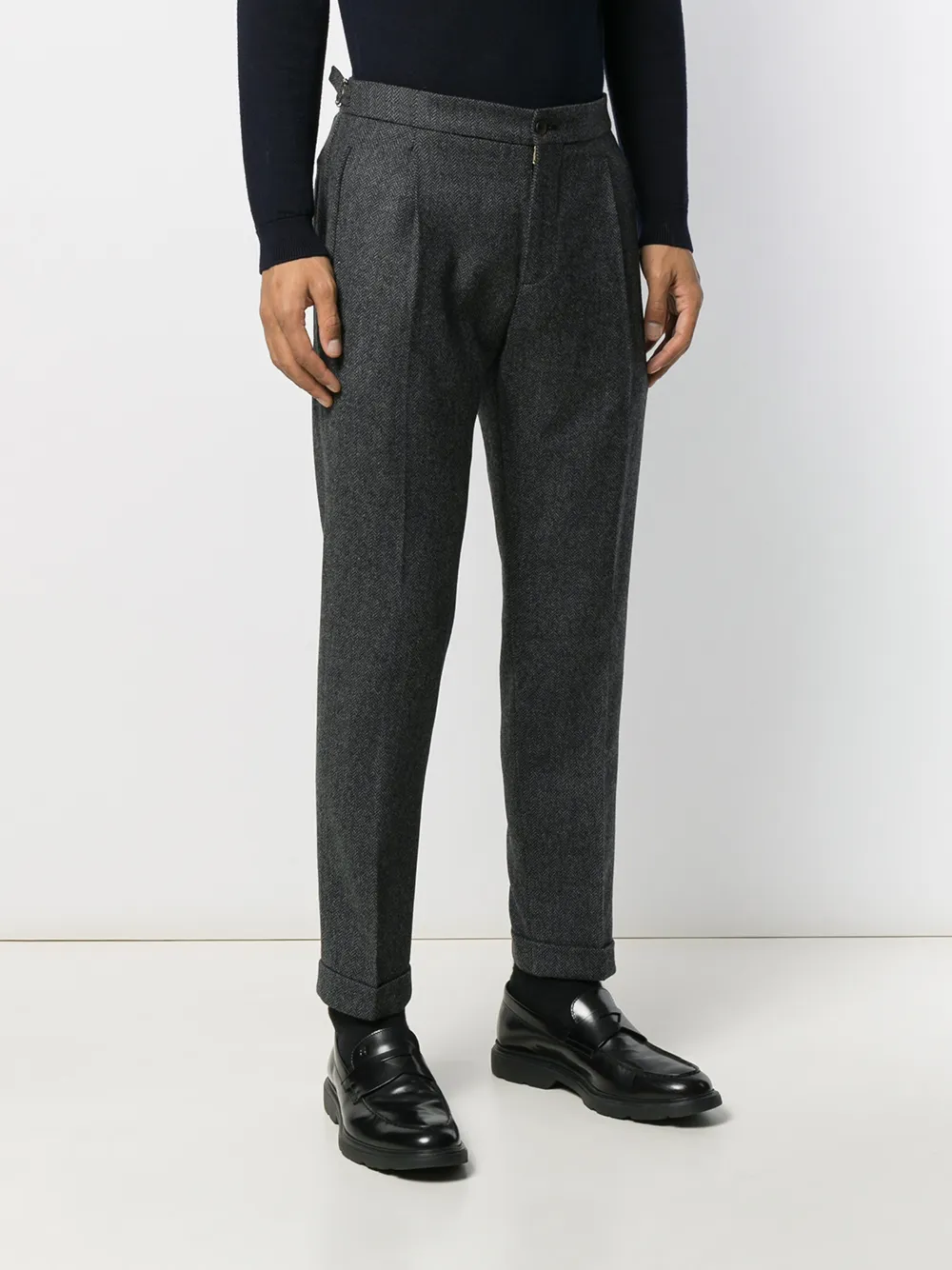 Брюки прямого кроя с узором шеврон от Berwich. Ширинка на молнии с пуговицей, прорезные карманы по бокам, задние карманы с листочкой, стандартная длина, подвернутые манжеты и узор шеврон. Цвет: серый.