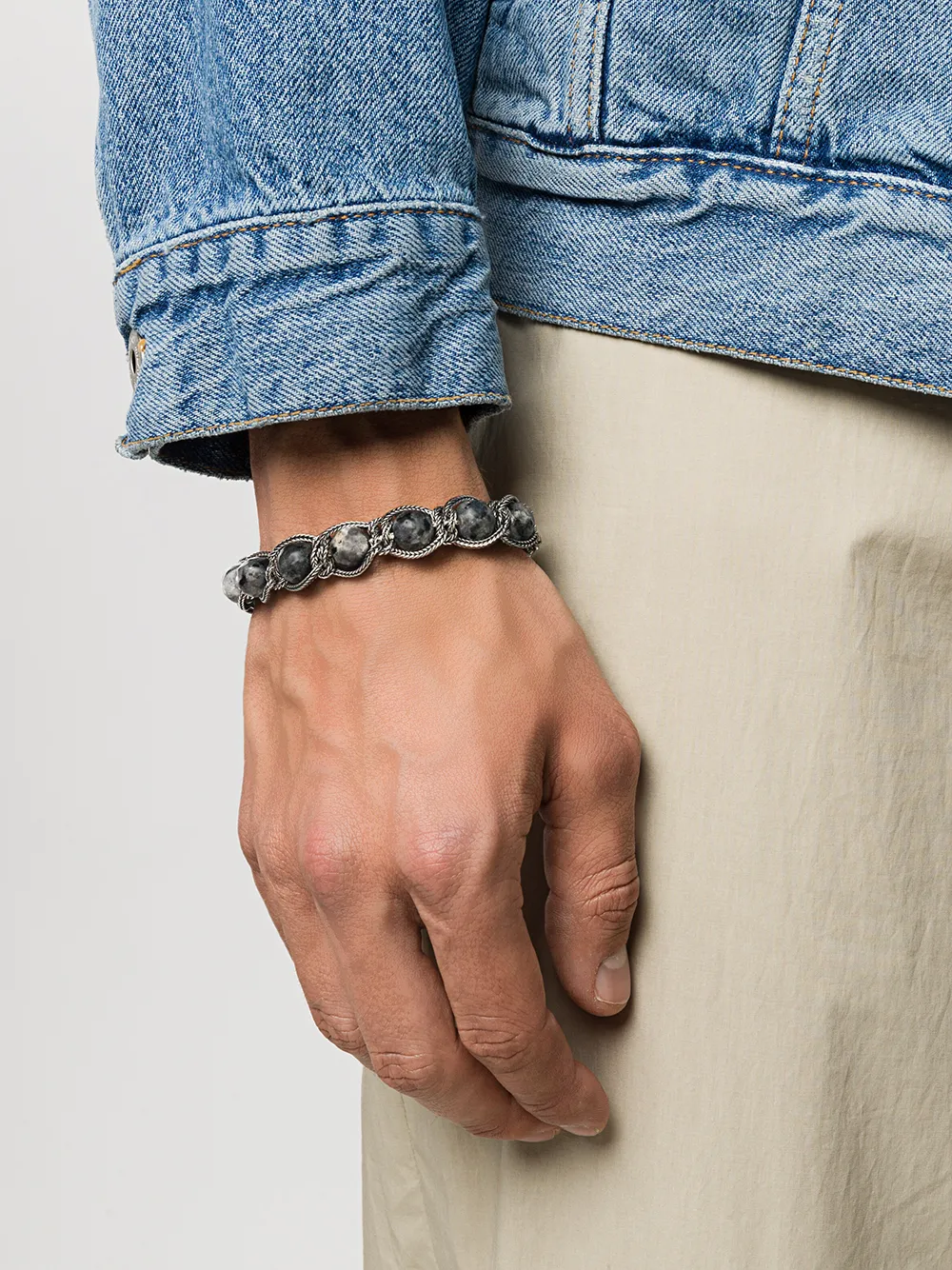 Браслет-цепочка с бусинами от Emanuele Bicocchi. Украшение из поделочных камней, подвеска с выгравированным логотипом и застежка-лобстер.