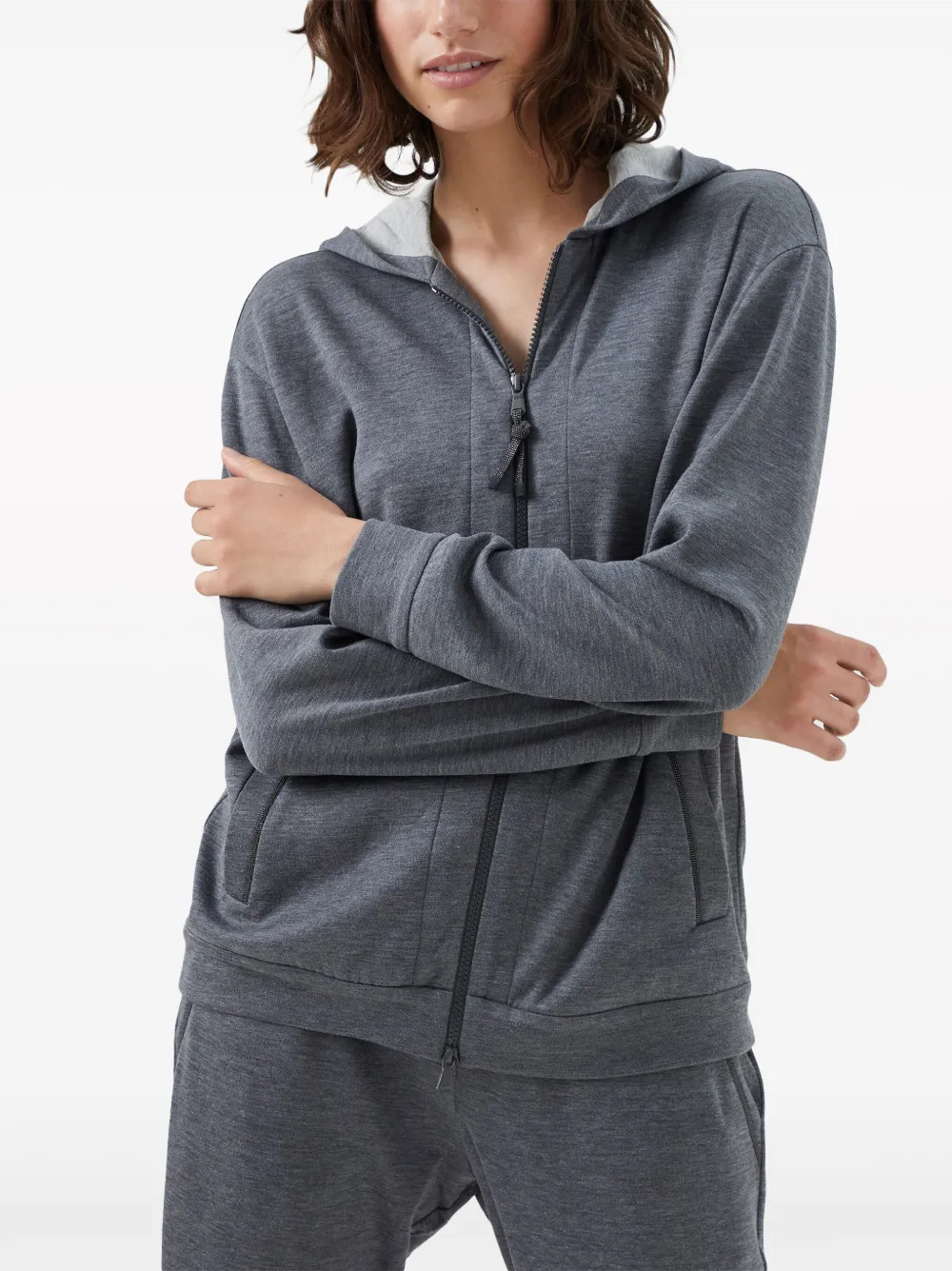 Худи на молнии с длинными рукавами Brunello Cucinelli, серый