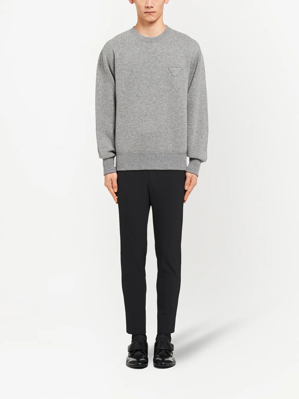 Кашемировый джемпер с круглым вырезом Prada, серый 300 140₽