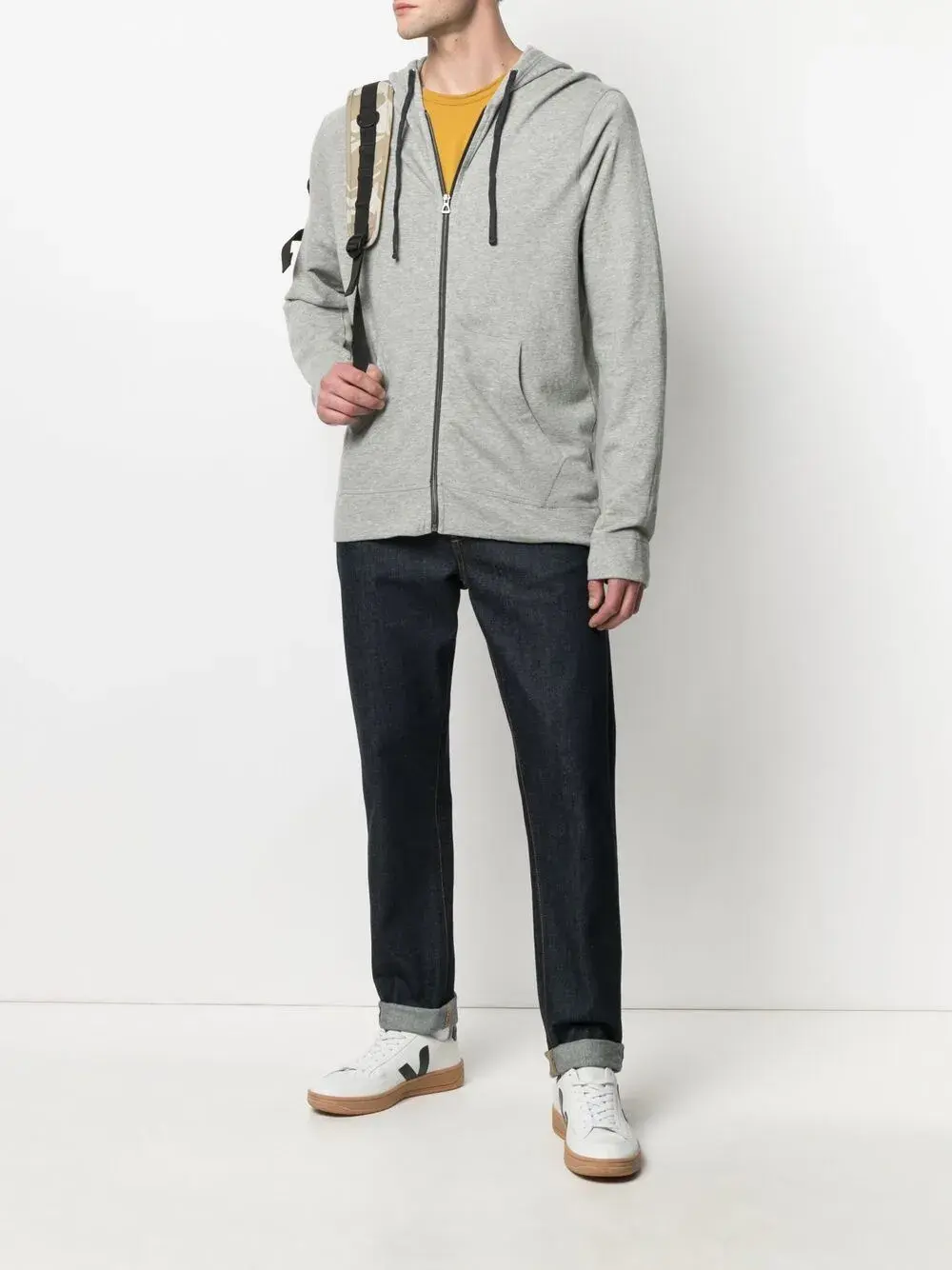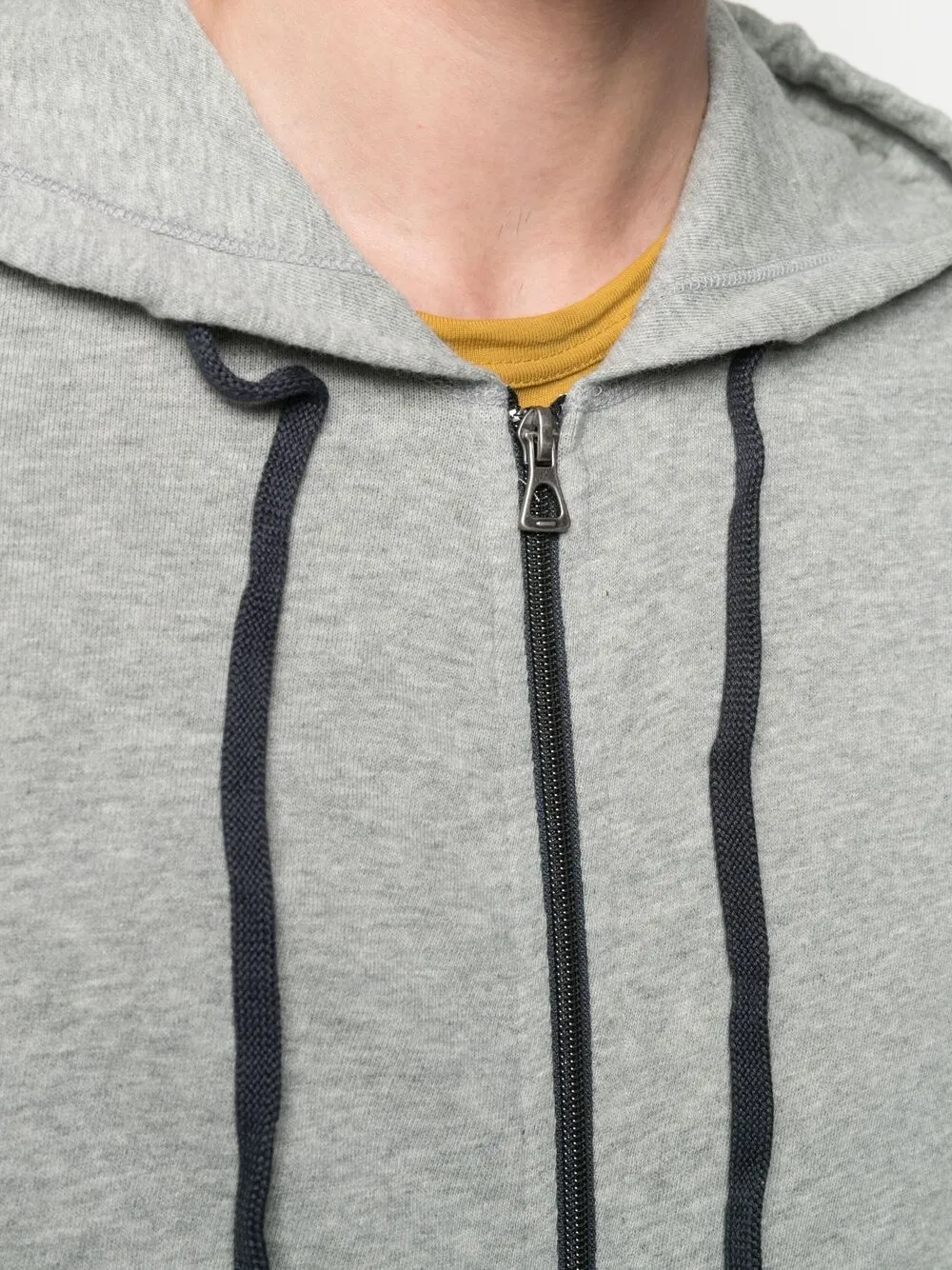 Затягивающийся на шнурок капюшон, застежка на молнии спереди, длинные рукава, два прорезных кармана по бокам и прямой подол.