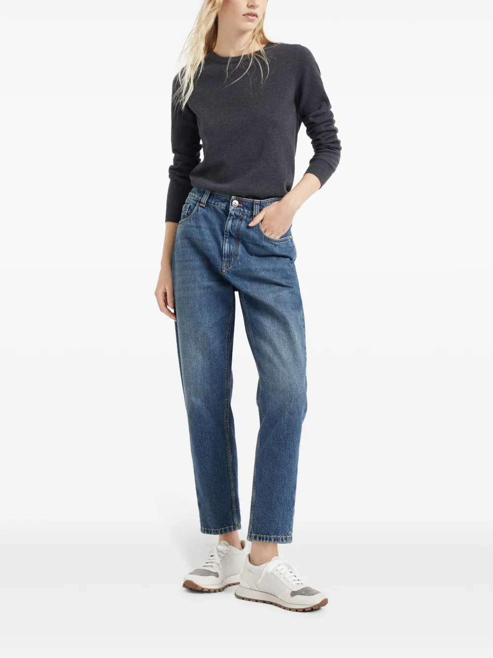 Кашемировый топ с длинными рукавами Brunello Cucinelli, серый 119 460₽