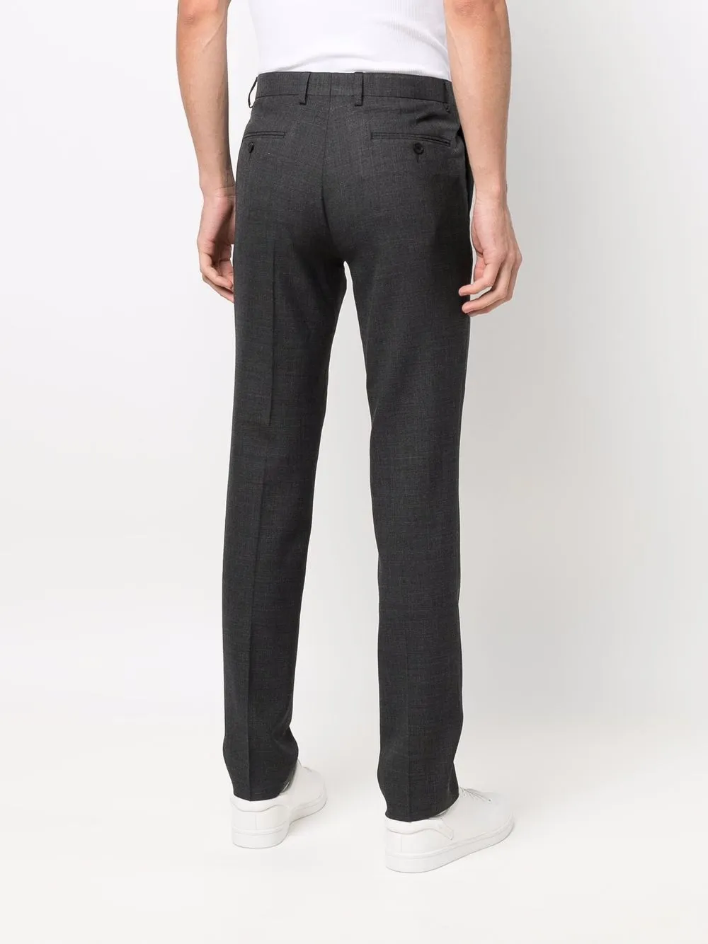 Классический крой, прямой крой, узкий крой, петли для ремня и два кармана с листочкой сзади. Цвет: серый.
