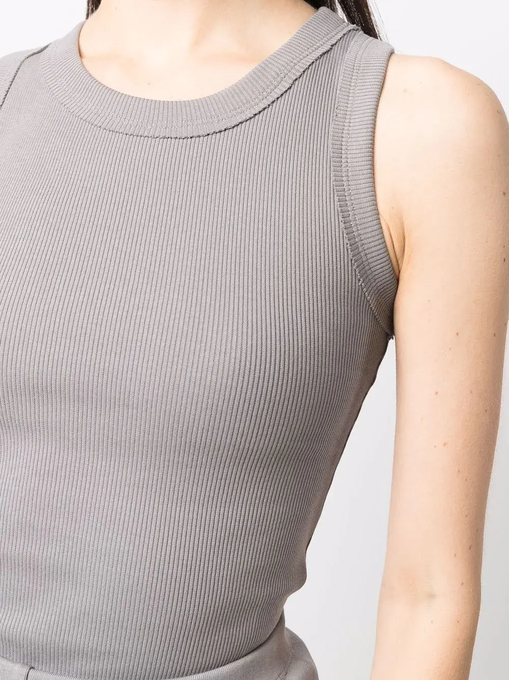 Круглый вырез, без рукавов, узкий крой и прямой подол. Цвет: серый. .
