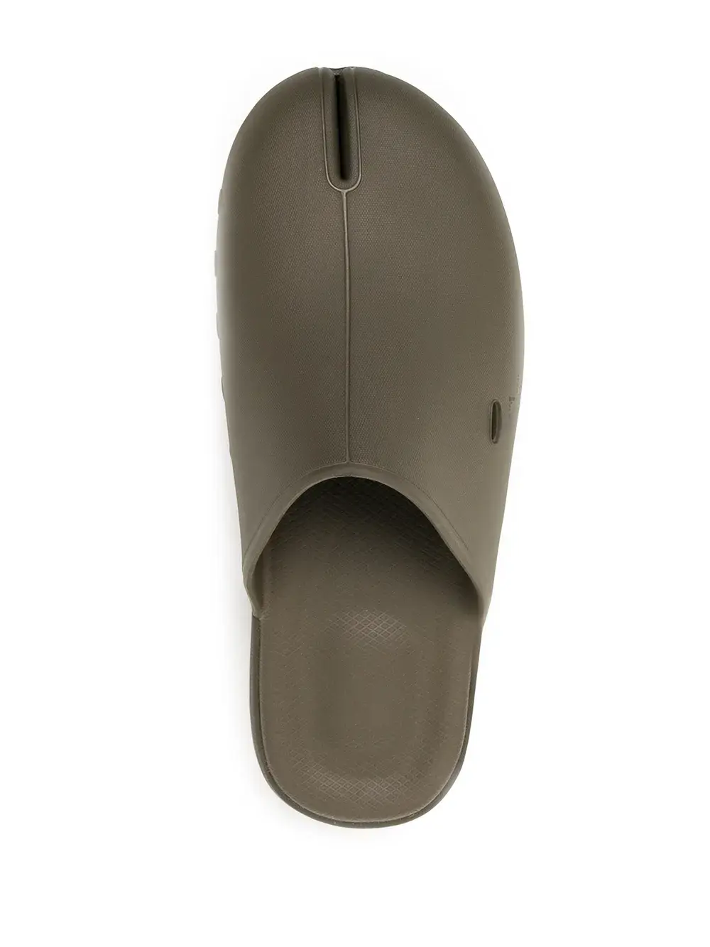 Носок с вырезом, тисненый логотип сбоку, перфорация, закругленный носок и массивная резиновая подошва.
