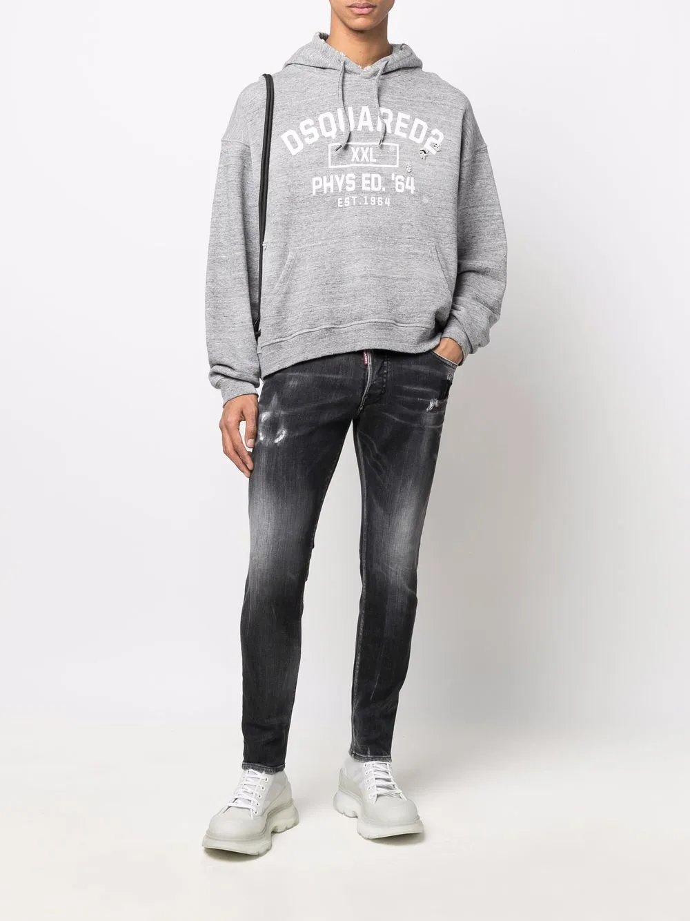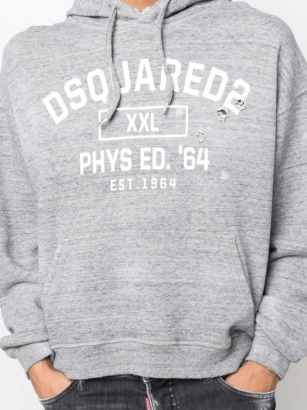 Худи с эффектом потертости и логотипом DSQUARED2, серый