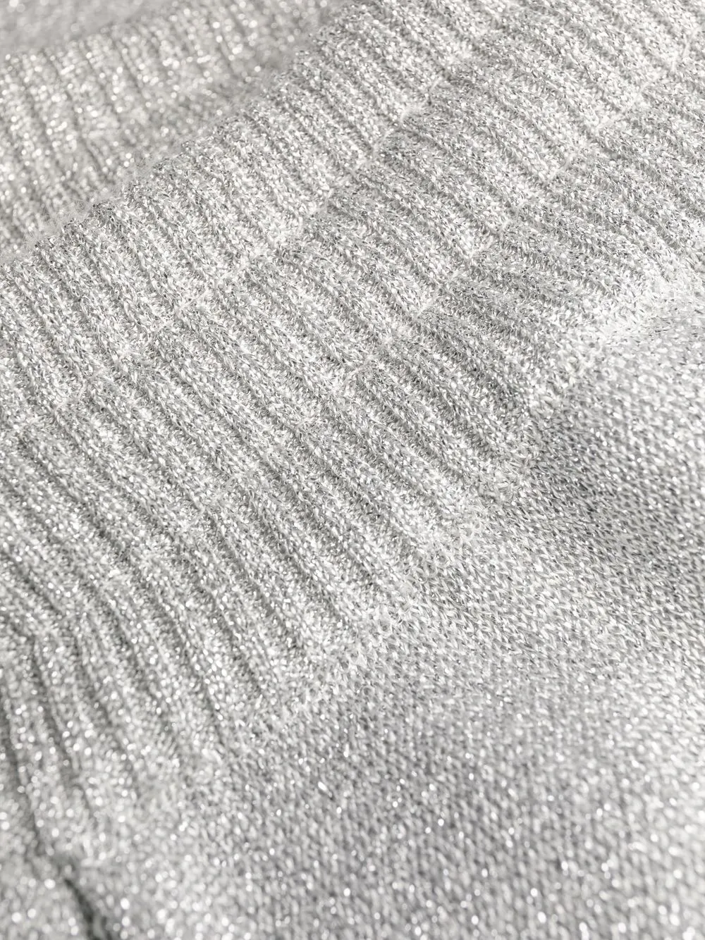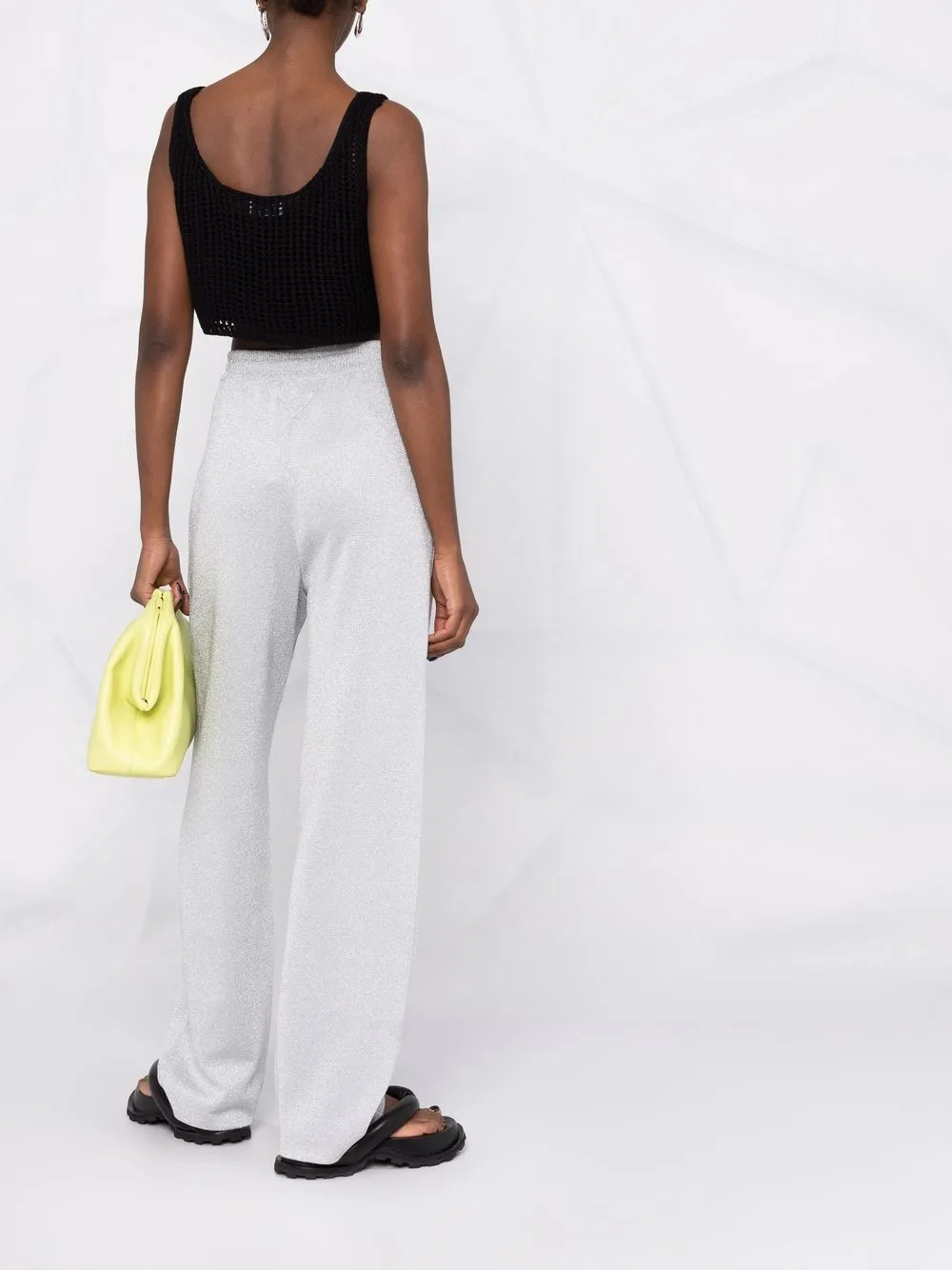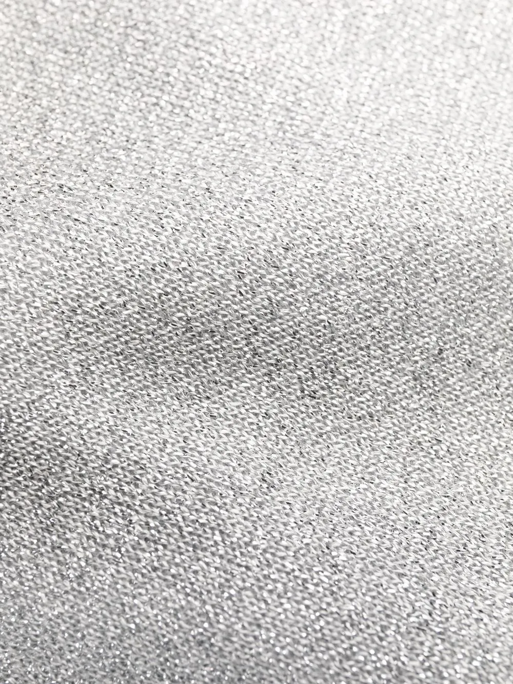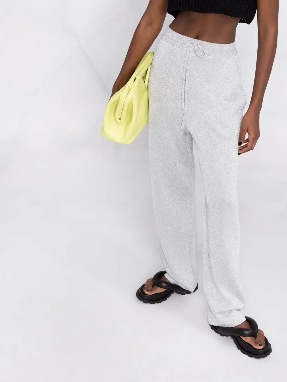 Трикотажный материал, люрекс, нашивка с логотипом сзади, прямой крой, два прорезных кармана по бокам и эластичный пояс на шнурке. Цвет: серый.
