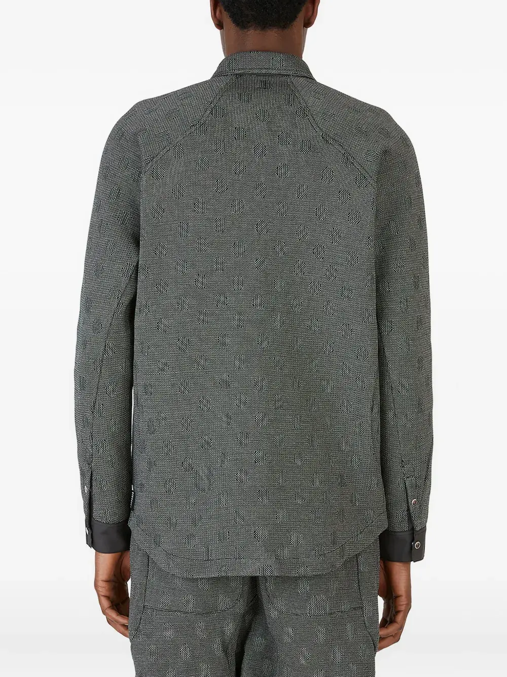 Серый фактурный плетеный дизайн с панелями, застежка на пуговицы, длинные рукава, воротник-стойка